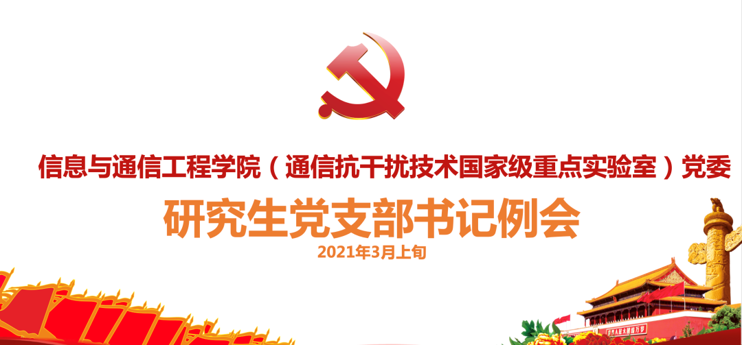 2021年3月12日,伟德国际victor1946(通信抗干扰技术国家级重点实验室)党委本学期第一次研究生支部书记例会于清水河校区科研楼C216会议室召开。此次活动邀请了三位支部书记分享党建工作经验,辅导员周旋老师主持,全体研究生党支部书记参与了本次活动。本次会议分为六个部分,分别为学习强国情况的研讨、党员发展情况、党史学习、支部共建、党员档案的管理以及部分研究生党支部书记分享的党建共享优秀案例。会议开始,周旋老...