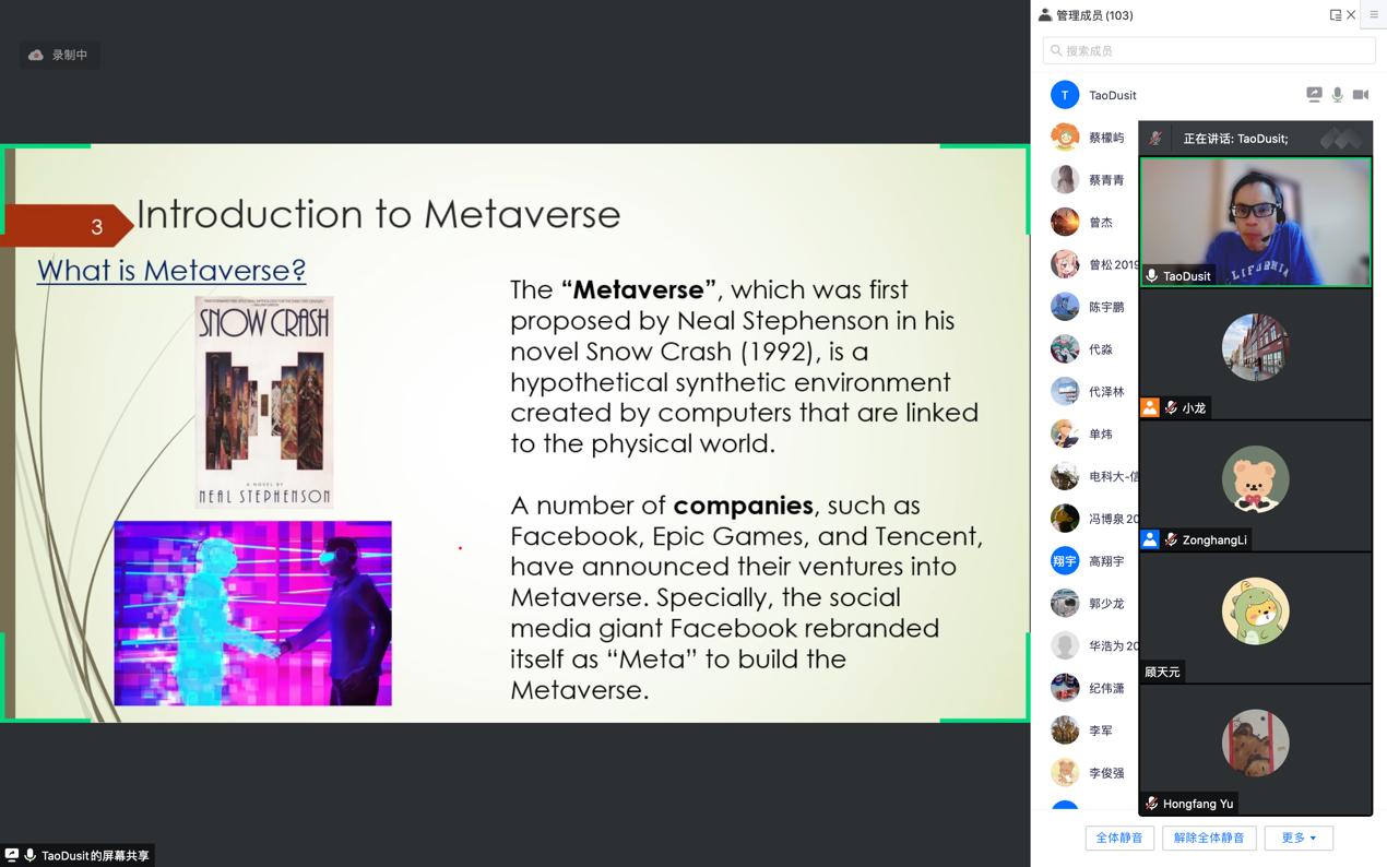 12月28日上午,由人力资源部教师发展中心主办、伟德国际victor1946承办的“名师讲堂”邀请到IEEE Fellow、新加坡南洋理工大学计算机科学与工程公司的Dusit Niyato教授,作主题为“Metaverse Virtual Service Management: Game Theoretic Approaches”的线上精彩报告。本次学术交流活动由伟德国际victor1946虞红芳教授主持,150余位师生踊跃参与。元宇宙是继Web和移动互联网革命之后的下一代互联网技术。在元宇宙中,人的数字化...