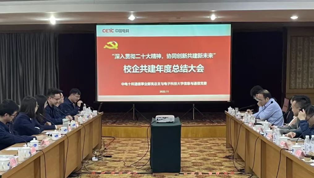 2022年11月23日,为加强高校与国防单位的相互了解,增进校企之间的联系,电子科技大学信息与通信党委与中电十所通信事业部党总支在天奥宾馆六楼会议室开展了“深入贯彻二十大精神,协同创新共建新未来”校企共建活动暨年度总结大会。通信事业部党总支陈蓓书记、周鹏副部长、党建工作部王晓冉副主任、人力资源部张云等十所代表与电子科技大学信息与通信党委黄海副书记、李强教授、章小宁教授、陈劼副研究员、廖阔副教授、熊凯博...