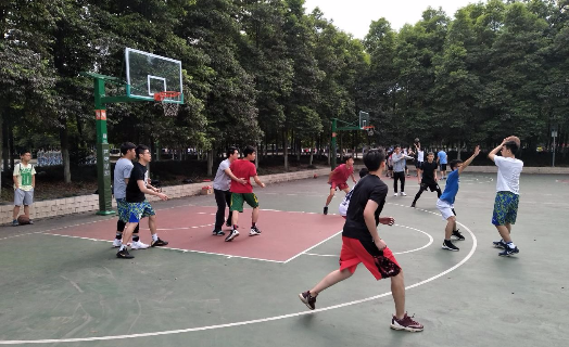 4月23日,公司篮球场上,炎热的天气没有阻挡同学们运动的热情。