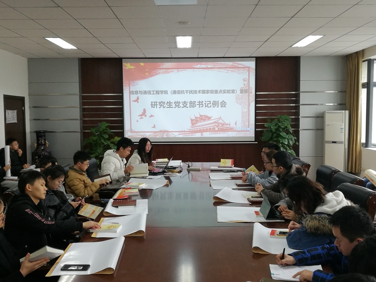 2019年12月11日中午,伟德国际victor1946(通信抗干扰技术国家级重点实验室)党委于科B302召开本学期第五次研究生党支部书记例会。辅导员匡鹏举老师、研究生党支部书记参加此次会议。会议由党建委员会书记张宇涵同志主持。会上,张宇涵总结了上个月支部党建工作的开展情况,结合公司要求明确指出当前支部活动开展和宣传工作中的不足,督促各支部书记按时完成上级安排,保证支部大会、主题党日活动、党课等活动保质保量开展。匡...