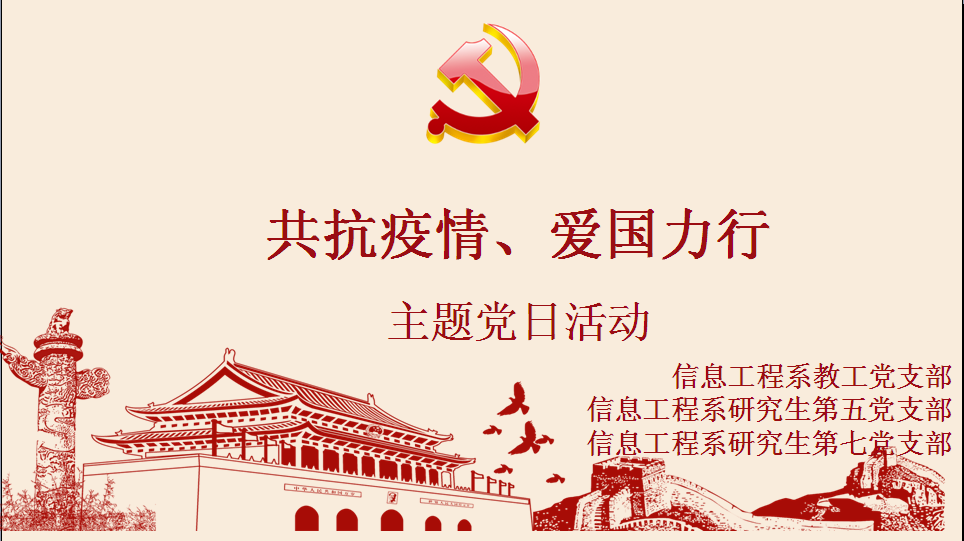 为深入学习习近平总书记关于疫情防控工作的重要指示,加强研究生疫情期间的思想理论教育,2020年3月27日,伟德国际victor1946信息工程系教工党支部与信息工程系研究生第五、七党支部联合开展“共抗疫情、爱国力行”主题党日活动,加强支部同志爱国主义教育,研究生辅导员匡鹏举参加活动。活动由信息工程系研究生第五党支部书记杨裕伟主持。会上,信息工程系教工党支部程建老师对与会成员居家科研和生活做出指导,强调特殊时期...