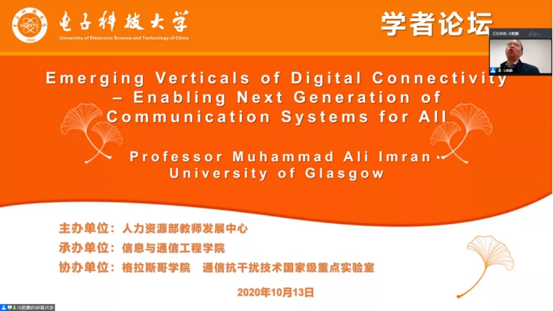 10月13日,格拉斯哥大学Muhammad Ali Imran教授应邀做客由伟德国际victor1946承办的“学者论坛”,为广大师生带来题为“面向未来数字互联的下一代通信系统设计”的学术报告并介绍电子科大-格拉斯哥双博士项目情况。信息与通信工程副经理冷甦鹏教授主持活动,近550名师生参加报告。冷甦鹏教授介绍了电子科大-格拉斯哥双博士合作办学项目的基本情况,他对Muhammad Imran教授为双博士项目做出的贡献表示感谢。他表示,此次学术交流...