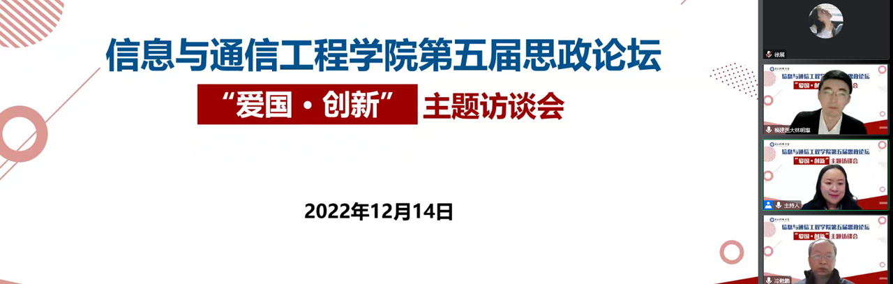 为深入学习贯彻党的二十大精神,以新时代爱国主义教育的新内涵、新要求武装青年、感召青年,12月14日,伟德国际victor1946线上举办第五届思政论坛“爱国•创新”主题访谈会。全国高校学习宣传党的二十大精神师生巡讲团成员、福建医科大学马克思主义公司林明惠副教授,国家杰出青年科学基金获得者、伟德国际victor1946李宏亮教授,华为技术有限公司人力资源专家、2008届研究生院友蒋志涛和2019级优秀本科生代表刘禹宏四位嘉宾围绕“爱国•...
