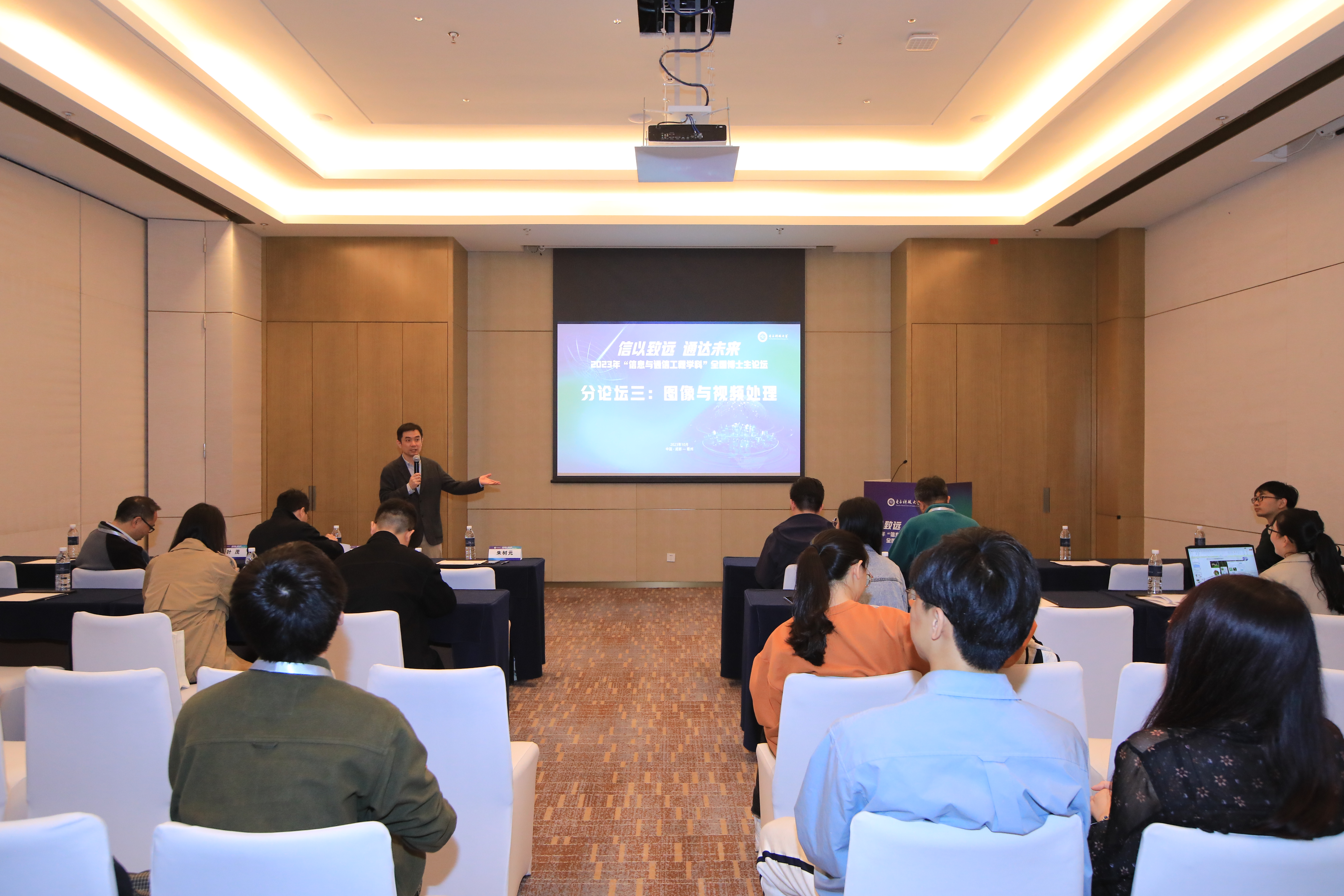 随后,北京大学电子公司副经理王兴军教授,清华大学高飞飞副教授,东南大学电磁空间研究院副经理程强教授,西安电子科技大学人工智能公司副经理董伟生教授,北京理工大学邢成文教授,电子科技大学科技委主任、天府绛溪实验室执行主任杨建宇教授等6位国家级领军人才围绕《硅基光电子集成芯片及系统应用》、《基于环境视觉感知的无线传输关键技术》等主题作特邀报告,深入剖析信息与通信工程领域各个方向的最新成果和发展趋势。