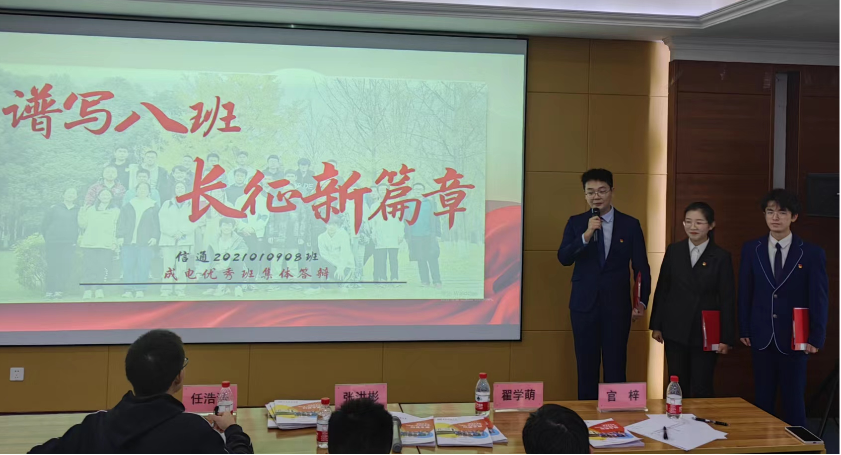各班员工代表在本次答辩中均以良好的精神风貌与实事求是的态度为评委老师展示了班级创建成就与班级精神风貌,展现了信通班集体团结一心,砥砺奋进的青春风采。
