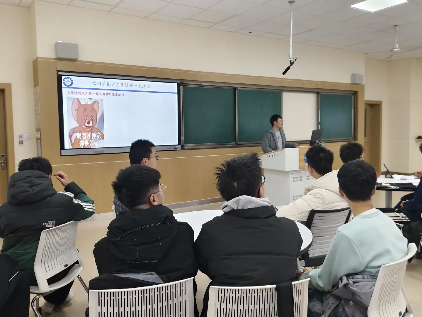 活动伊始,王老师对班级同学们进行了老员工活全方位的建议与指导,首先,王老师强调了体育锻炼的重要性,作为电子信息领域的人才,应当具有强健的体魄与过硬的身体素质,才能在高强度的科研工作中发挥自己的能力,他希望同学们在紧抓学习的同时,也能注重自己的身体健康。