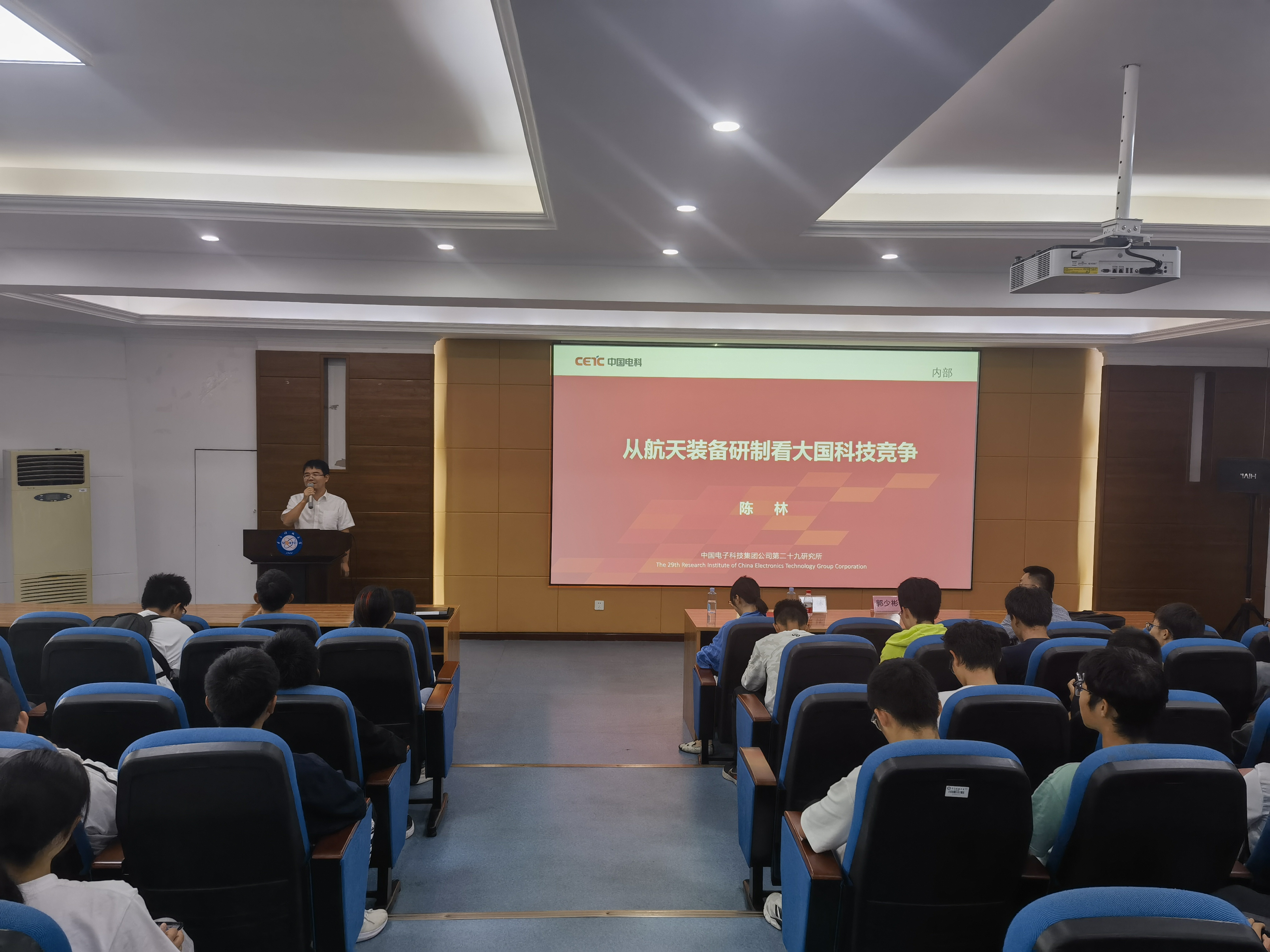 加强爱国主义教育,明确总体国家安全观,公司开展系列国防安全教育讲座,力求使“听党指挥,科技报国”学科思想深入新生心。组织新生学习空军少将乔良将军新生第一课,提升国防意识,保卫祖国安全。公司联合成都市广播电视台等多家单位承办“踔厉奋发强国防 勇毅前行向复兴”2023年成都市全民国防教育日宣讲活动,全体本科生参加活动,公司“星光”老员工红色文化剧社成员、2023级本科生带来合唱《我和我的祖国》,将艺术表演融入理论宣讲中,增强了国防教育的感染力、吸引力。新生在本次活动中充分发挥自身优势与特长,在群众性国防教育活动中展现信通学子的专业素养和精神风貌,助力营造关心国防、热爱国防、建设国防、保卫国防的浓厚氛围。邀请中国电子科技集团公司第二十九研究所副总工程师、航天产品部主任陈林为本科新生开展“航天科技装备看大国竞争”专题教育,带领新生了解中美科技博弈的历史发展,以国际空间站建设引入大国之间科技竞争的激烈,再以中国北斗的研制历史与系统建设展现中美科技差异,引导员工思考航天科技与国防建设的关系,树立鸿鹄志,未来可以投身国防科技研发事业中。