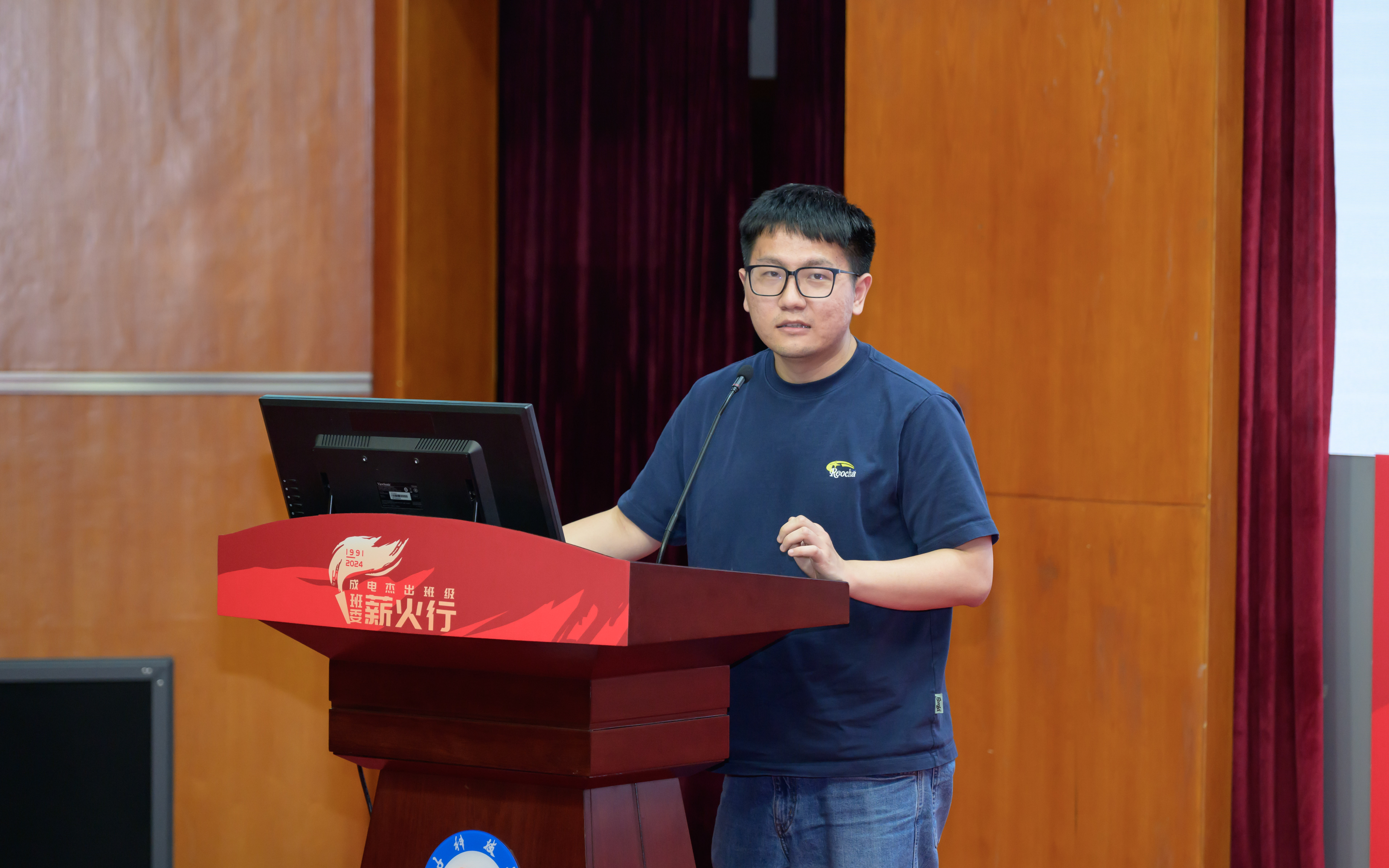 14级7班员工代表、员工党支部书记黄羽帆带来党支部建设经验分享。通过“成电精神代代传”“红色踪迹家乡觅”“成电校园长征路”等支部特色活动,传承红色基因,弘扬成电精神。“把有意义的事情做得有意思,把有高度的事情做得有温度”是黄羽帆和支部同学们的工作理念,也贯穿了他们大学四年和踏入职场后工作生活的方方面面。在展示支部集体和个人荣誉时,黄羽帆寄语同学们跟身边优秀的同学相互学习、相互支持,与优秀的集体共成长。