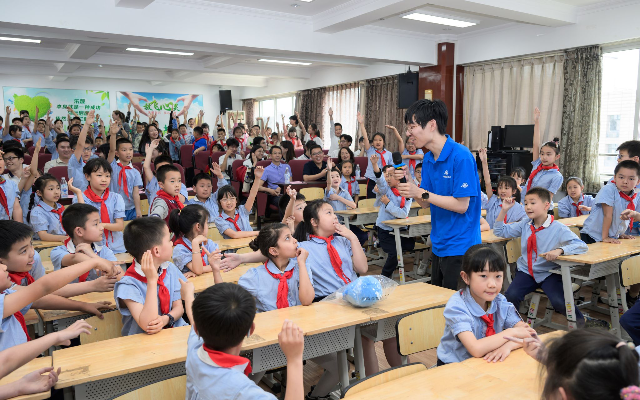 在互动环节,同学们踊跃抢答老师提问,现场气氛热烈。