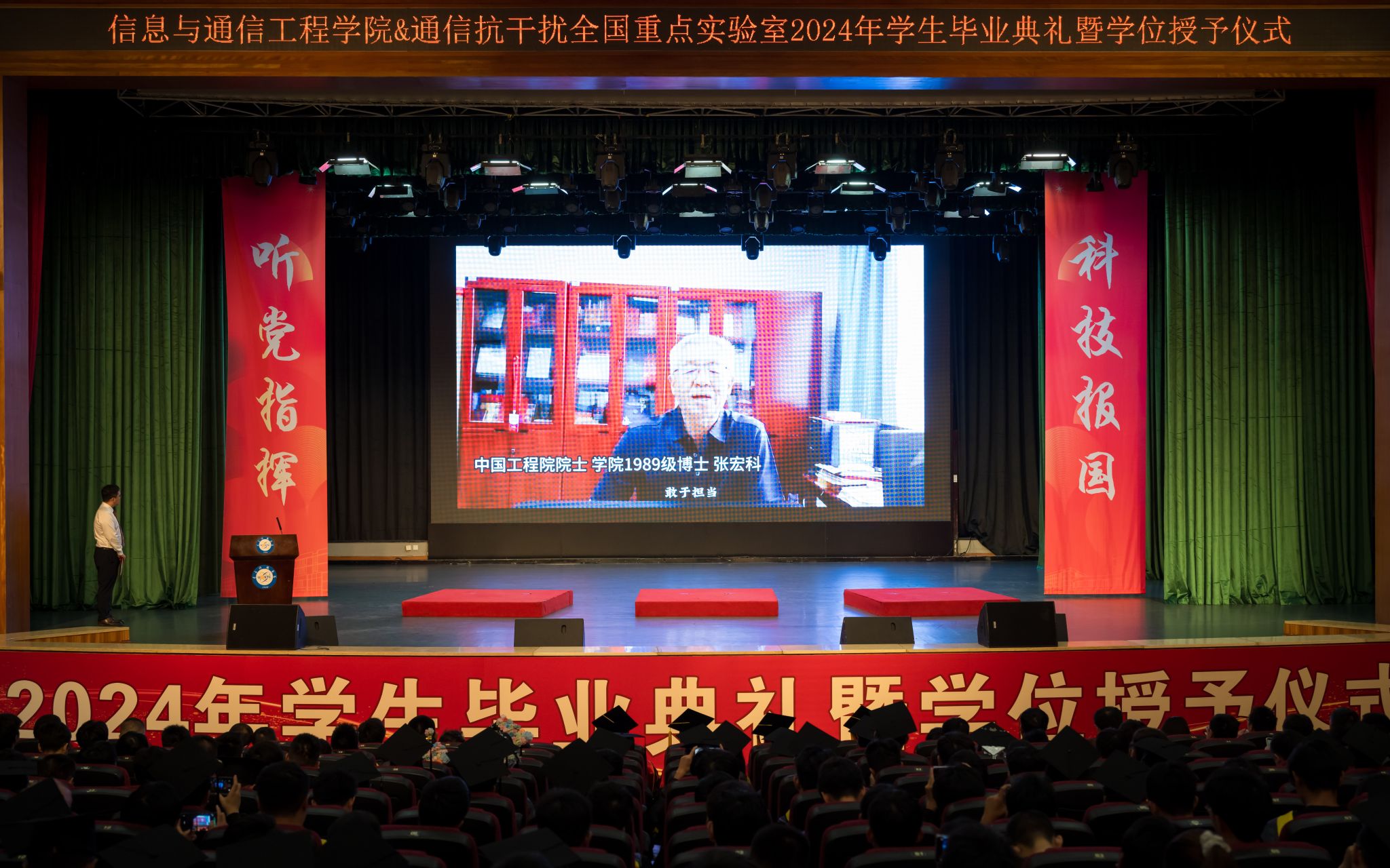 中国工程院院士、公司1989级博士张宏科院士也作为院友代表,通过视频方式为毕业生们送上了寄语。他分享了自己的求学和科研经历,其真挚的话语为在场的同学们带来了极大的鼓舞。相信在他的鼓励下,毕业生们将以优秀院友为榜样,成为心怀“国之大者”新时代好青年。