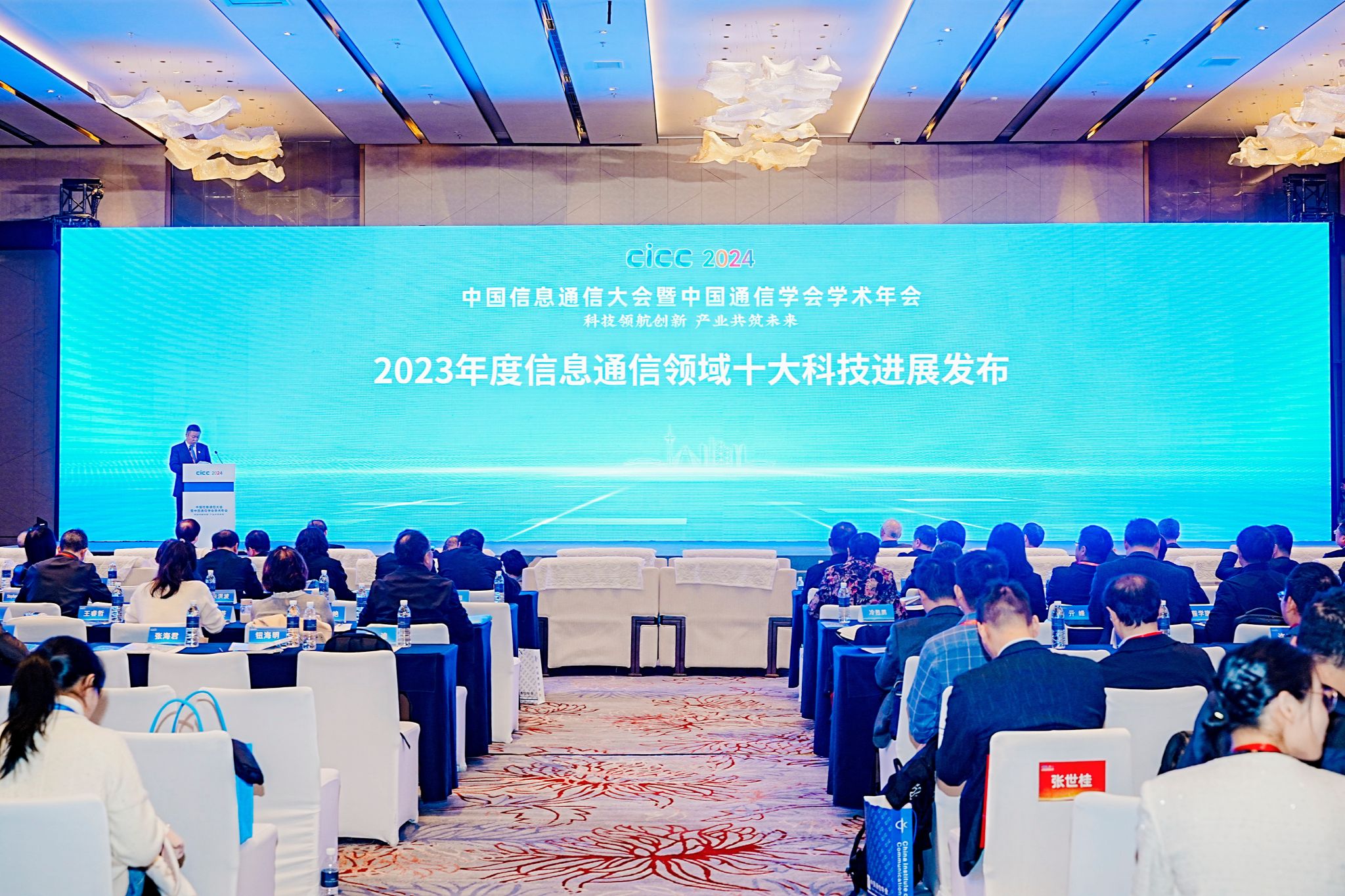 开幕式上,举行了2024年度中国通信学会科学技术奖颁奖仪式,发布了2023年度信息通信领域十大科技进展,公司党委书记曹萍出席颁奖仪式。其中,公司的两项成果“面向宽频通信的多功能电磁结构与天线设计理论与方法”、“非合作无人机多模态协同感知与管控技术及应用”获2024年度中国通信学会科技奖一等奖;另外两项成果“面向通信网络的专用安全编程语言 YakLang 创新及应用”、“应用于体育赛事超高清视频转播的太赫兹高速无线通信系统” 入选2023 年度信息通信领域十大科技进展。
