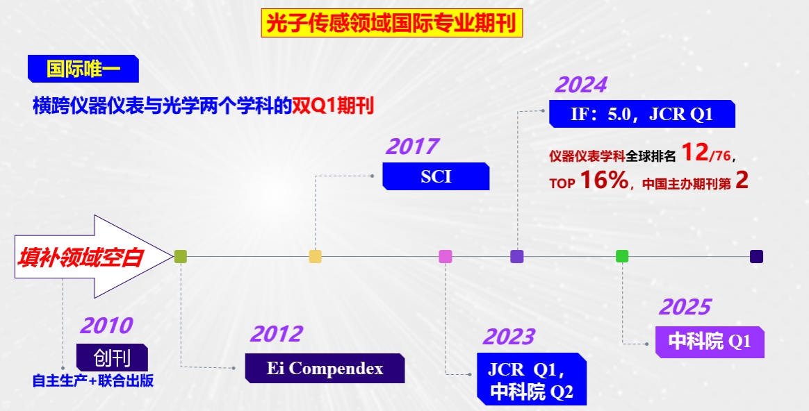 《Photonic Sensors》于2010年创刊,由教育部主管、电子科技大学主办,由电子科技大学与施普林格自然集团联合出版的国际上第一本光子传感领域专业期刊。创刊主编饶云江教授是国家重要人才计划入选者,IEEE、OSA、SPIE三会士,中国光学学会纤维光学与集成光学专委会副主任,中国光学工程学会光纤传感技术与应用专委会副主任、常务理事,电子科技大学光纤传感与通信教育部重点实验室主任。PhoS自2017年进入SCI以来,已连续7年入选“中国国际影响力优秀学术期刊”。