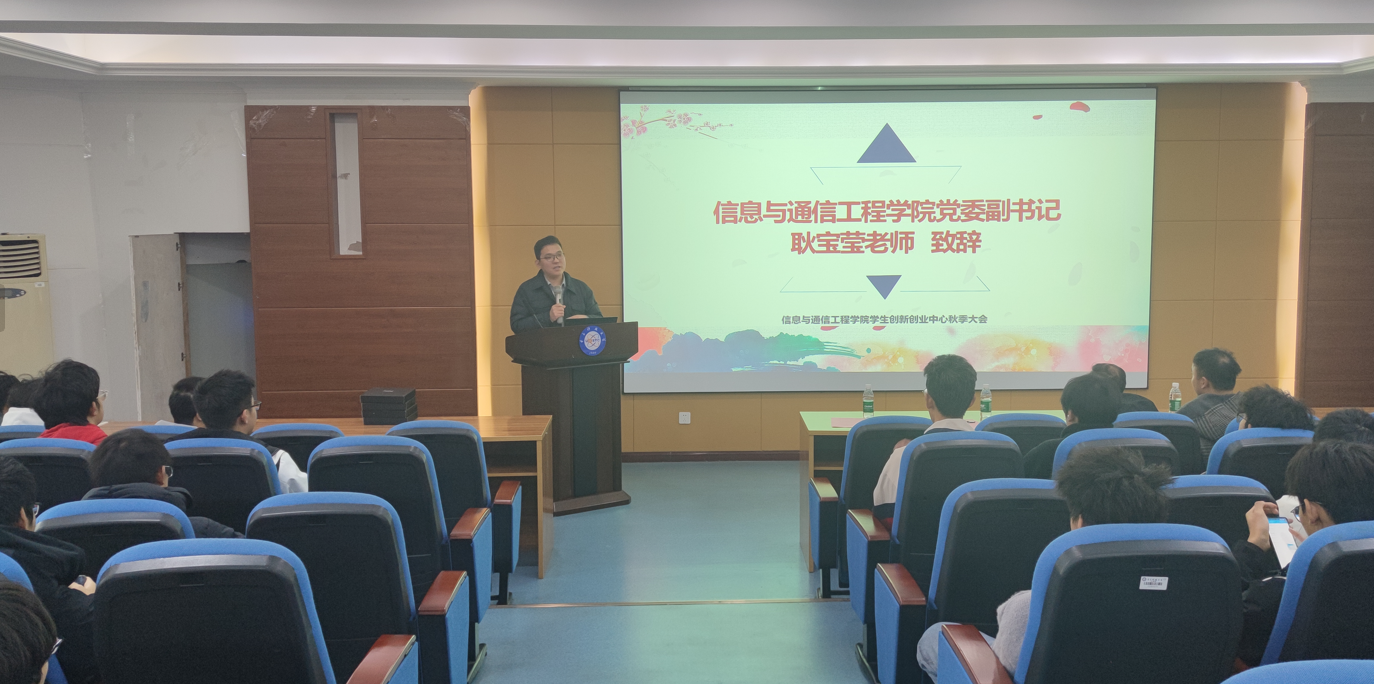 大会伊始,耿宝莹副书记为大会致辞。他首先对创新创业中心的基本情况和发展历程做了详细介绍,指出公司始终致力于为同学们打造优质的科研学习平台,提供全方位的支持。他强调,同学们要深刻领会团结协作的重要性,在竞赛和日常活动中,加强沟通交流,凝聚起强大的团队力量,共同为公司的科创事业添砖加瓦。