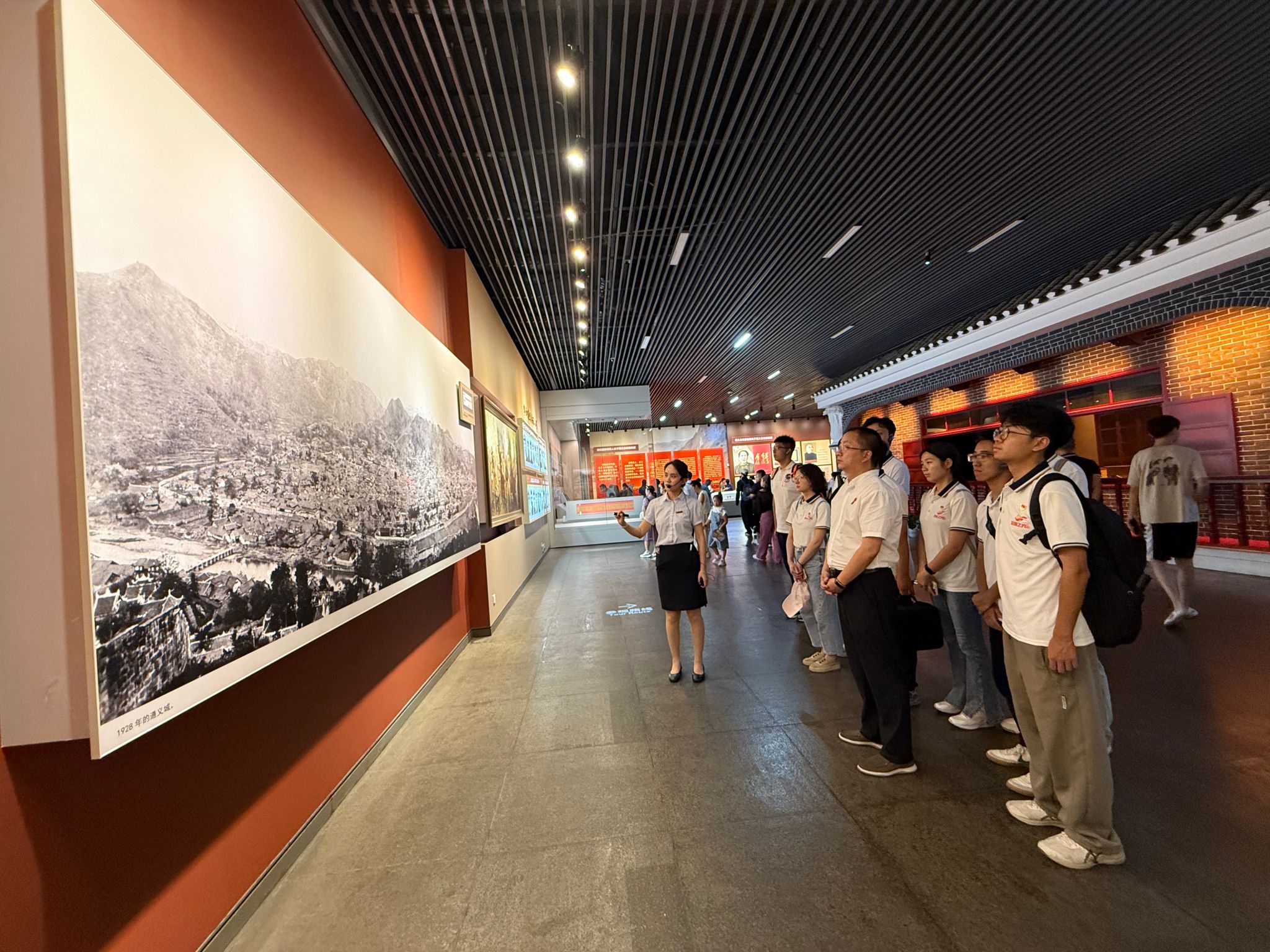 在遵义会议陈列馆中,伴随着讲解员详细的解说,通过详实的史料、珍贵的文物与生动还原的场景,大家系统回顾了红军从第五次反“围剿”失败到被迫长征,从屡遭挫折到召开遵义会议实现伟大转折,以及实现四渡赤水等一系列波澜壮阔的革命历程,深刻体悟“坚定信念、坚持真理、独立自主、团结统一”的遵义会议精神与“不怕牺牲、不畏艰难、团结奋进、忠诚为民”的长征精神。