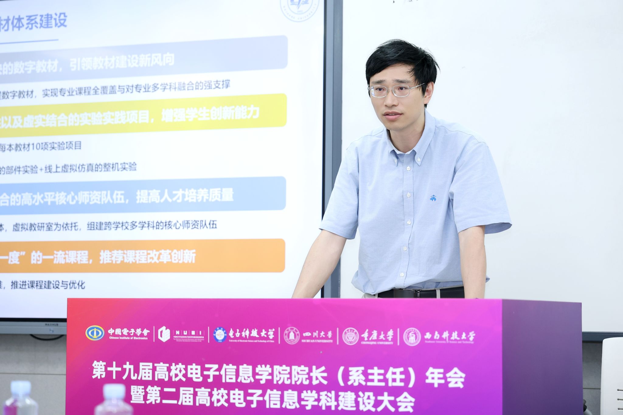 国防科技大学电子技术教学团队首席杜湘瑜教授带来了题为《学为中心、多元融合、数智赋能,打造电子技术系列数字教材》的报告。她指出,数字教材是智能化时代教材形态的进化与升级,将成为撬动核心教学环节革命性变化的杠杆之一。报告结合国防科技大学电子技术精品课程体系的建设成果,生动展示了“以员工为中心”的一体化电子电路系列数字教材建设思路、设计过程与显著特色。