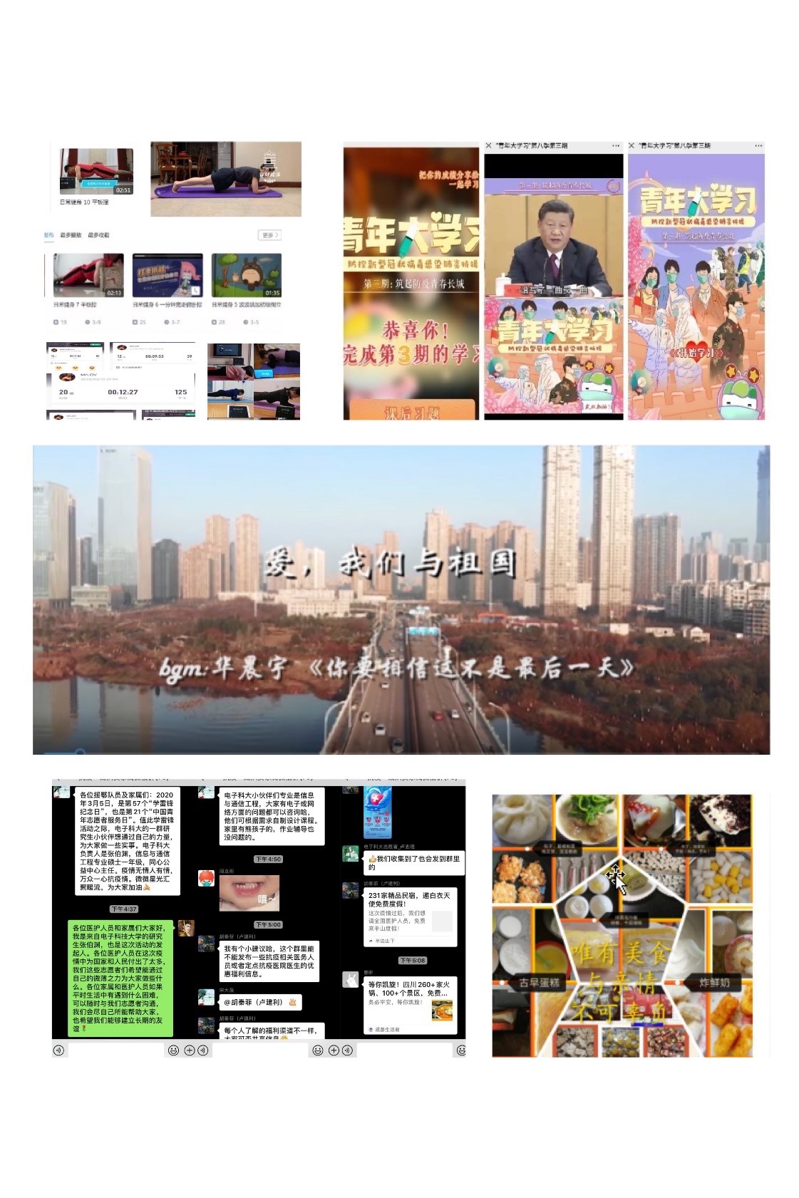 研究生党支部组织党员开展自学和网络学习,依托视频会议平台、网络直播平台、微信公众号等,组织开展直播课堂、主题讨论、读书分享、学习互动、知识竞赛等灵活多样的线上活动形式,确保组织生活不断线,唱响爱国最强音。如电子工程系研究生第五党支部,组织“2020年新冠肺炎防治全国统一考试”,开展“新冠肺炎疫情防控”——科普知识有奖竞答活动。电子工程系研究生第七、八党支部联合创作MV《同心抗疫,共筑大爱》,宏扬正能量,致敬所有的抗疫英雄! 信息工程系研究生第七党支部开展特殊的“疫情防控,我想对你说”主题党日活动,述说对抗“疫”工作人员的感谢。