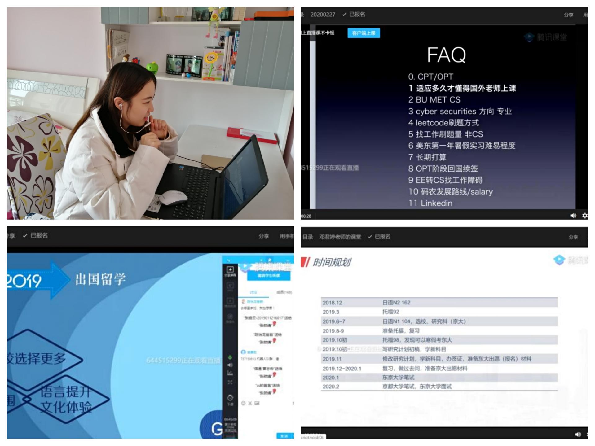公司启动2017级考研指导工作,组建考研辅导团队朋辈指导,网络共享考研资料,坚定员工备考意志。2018级邀请专业教师开展语言备考专题讲座,为意向留学员工提供支持,同时成立线上打卡学习营,鼓励员工相互监督,持续学习。2019级积极开展视频早自习、在线完成早自习任务进度等活动,鼓励员工早起打卡,规律作息;打造“大一四点半”线上系列分享会,着重解决员工成长中的痛点、痒点问题,科普海外留学、揭秘科创竞赛等,全面把握员工学习情况,引导员工克服困难,自律成长。