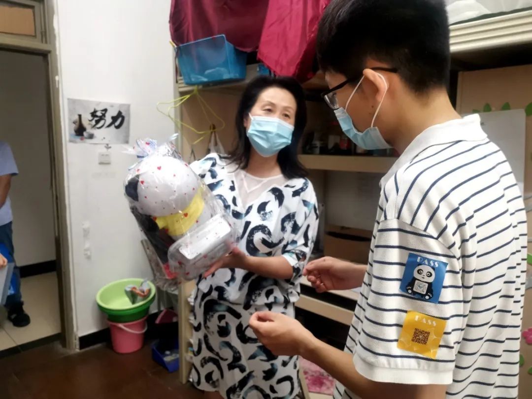 在同学们进入寝室后,公司领导也来到宿舍区,细心问候了同学们的返校情况,为大家送上了返校小礼物与爱心防疫包。