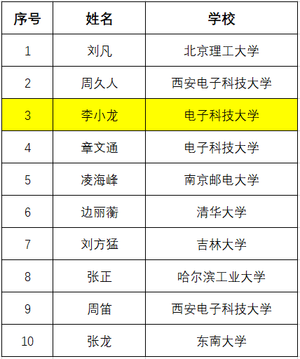 出版工程从“中国电子学会优秀博士学位论文”中遴选确定资助对象,入选者将获得相应的出版著作资助,相关论文著作将由人民邮电出版社出版发行,同时中国电子学会将在科技奖励大会上为获奖者颁发证书。7月22日,中国电子学会公布入选名单,公司李小龙副教授成功入选,全国共10人。入选名单如下: