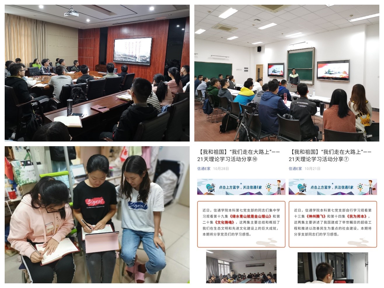 为使理论学习在员工支部中更具效力与活力,公司持续开展“21天理论学习”主题活动。活动的前14天为理论学习阶段,党支部的同志们通过集体学习、个人观看等方式,观看学习24集大型文献专题片《我们走在大路上》;后7天,通过线上网络文章、线下微党课分享、小组研讨等形式分享学习观看感悟,并在公司网站和微信公众号上进行推送。同时充分发挥优秀党员和青年学子的示范引领作用,选出10名优秀党员组成微党课宣讲团,结合自己的学习体会和时政热点开展宣讲。支部的党员同志们在与同辈的交流中传递红色精神,用实际行动影响着身边的同学们。这一持续性主题活动通过线上线下互动结合的方式,让理论学习真正融入员工党员的日常生活中,促进理论学习入脑入心入行。