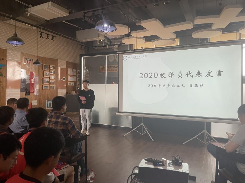 2020级学员代表夏玉林同学给新一届同学们分享了自己在“壹系壹班”的学习与成长,希望大家庭中的所有人能聚是一团火,散作满天星。