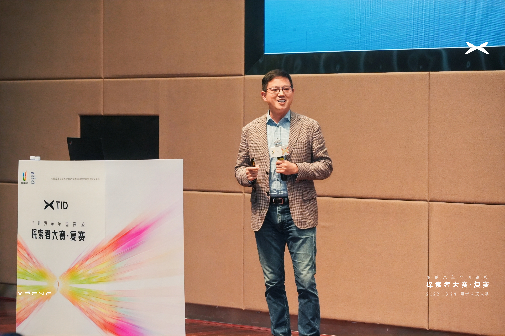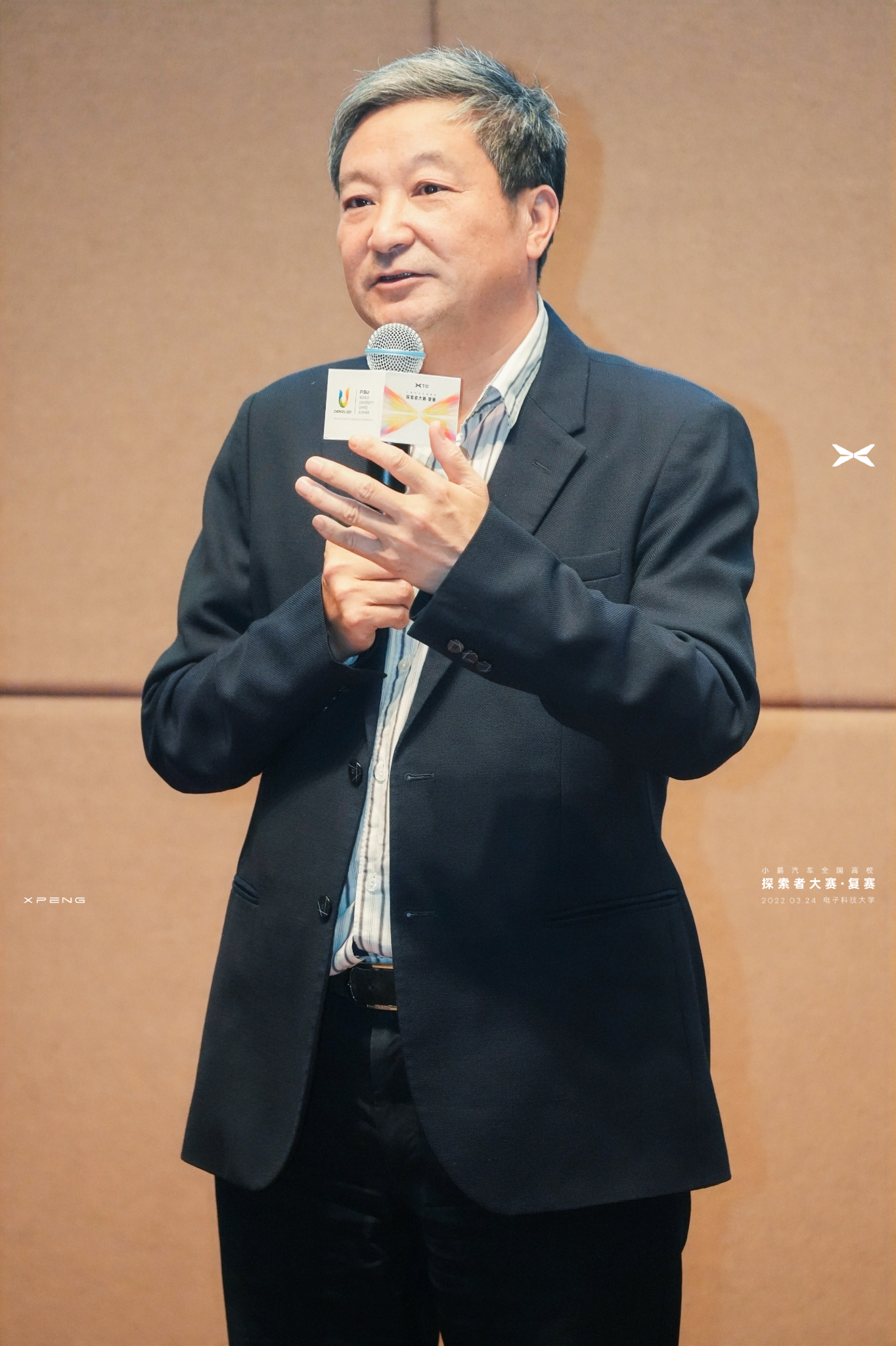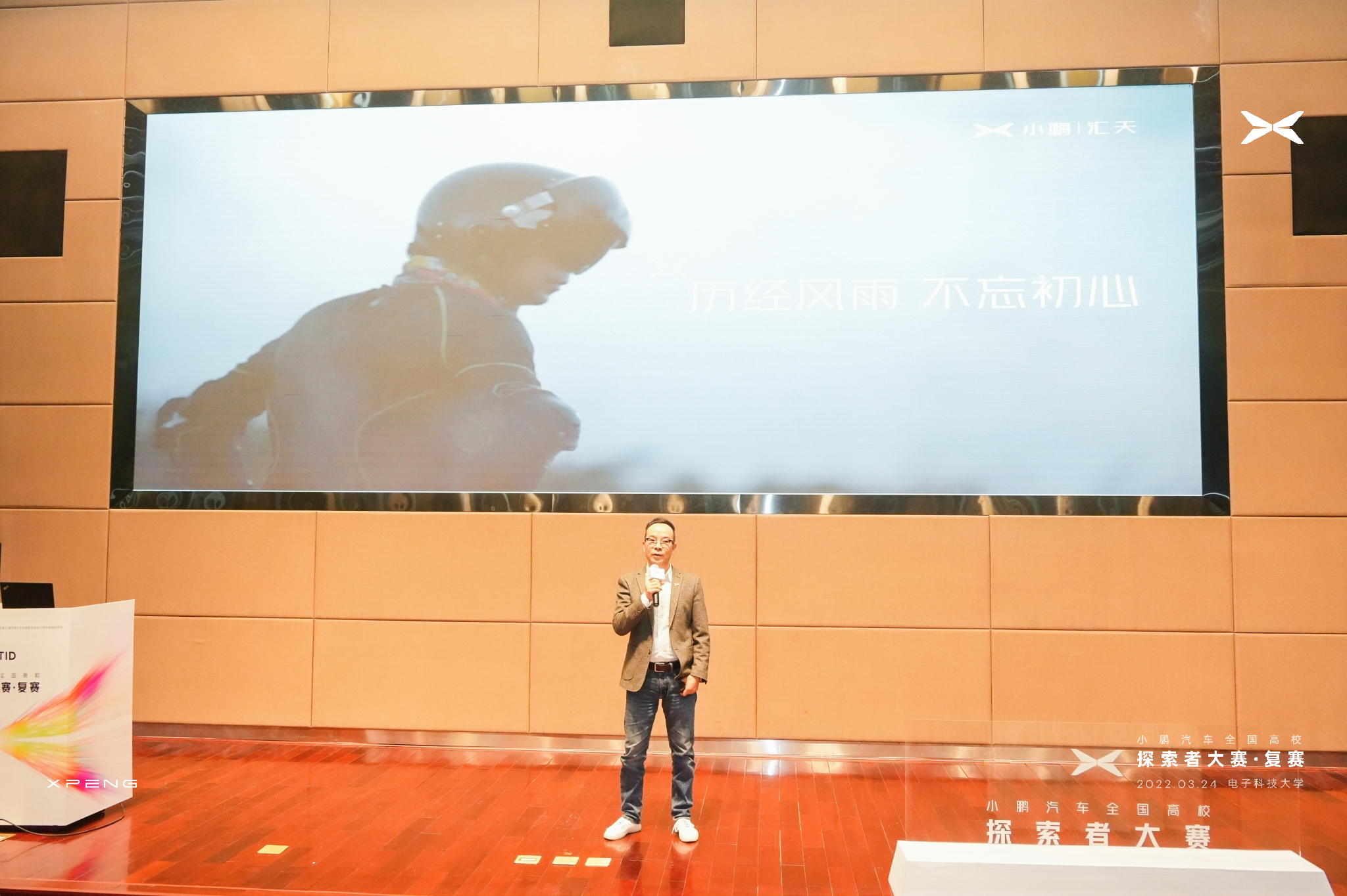 副董事长杨晓波教授在致辞中勉励参赛同学,“相比跟在别⼈后⾯做到第⼀,更应去尝试创造唯⼀的事情”。教务处副处长黄钰林教授代表公司感谢小鹏汽车对本次比赛的大力支持,鼓励同学们沉着应对,赛出水平,公司将持续支持各类学科竞赛的举办,未来将不断推进与小鹏汽车等企业在竞赛举办等方面的合作与交流。小鹏汇天创始⼈、总裁赵德⼒分享了他早期创业的经历以及对探索精神的理解,他表示:“对于小鹏而言,探索精神就意味着突破科技的边界,做前⼈没有做过的事,就像是在⿊暗中摸索,往往要努⼒到⽆能为⼒,才能看到黎明的曙光”。⼩鹏汽车副总裁⾦斌在致辞中表示:“希望同学们可以借探索者⼤赛,激发⾃⼰的探索能量,发挥潜⼒⽆限的创意;哪怕只是⼀次设计上的⼤胆想象,也许背后都蕴含着可以影响、改变这个世界的能量”。
