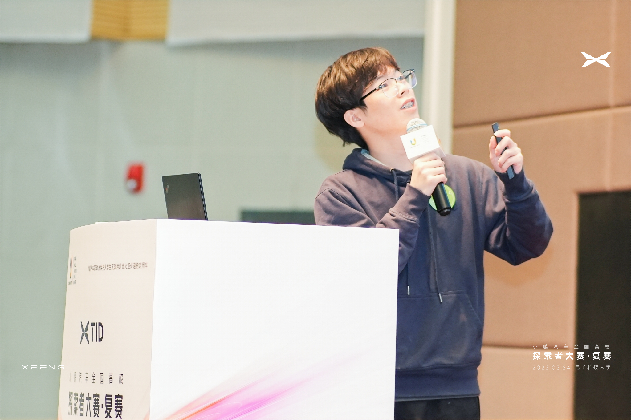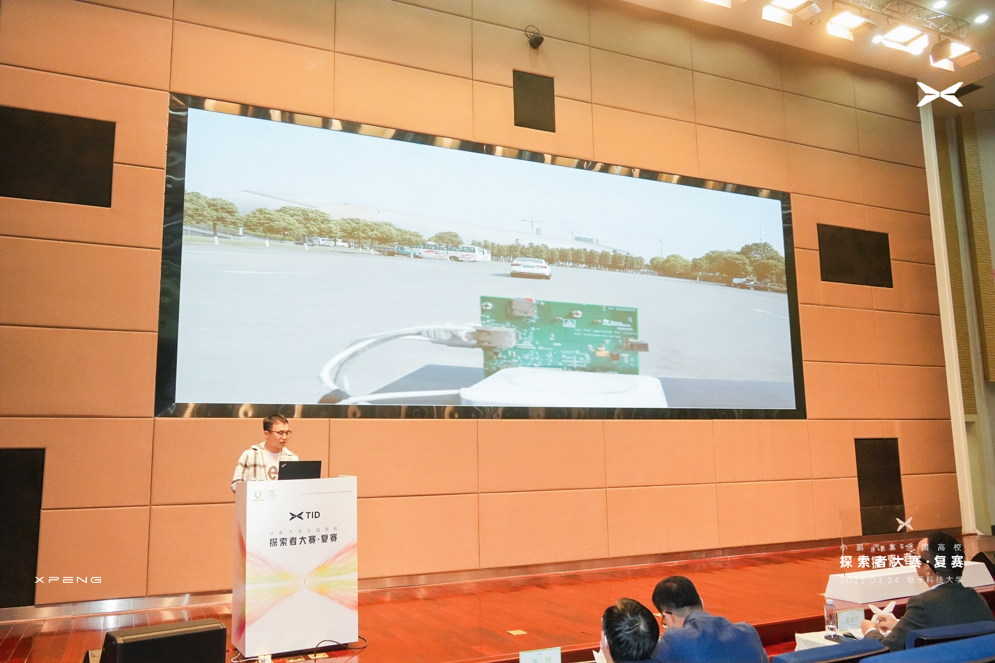 小鹏汽车第⼀届全国高校“X-TID”探索者⼤赛自2021年12月份启动以来,受到来自内地、⾹港及海外的20所⾼校学⽣的报名及关注,经过初赛的严格选拔,最终有21份作品⼊围复赛,其中技术赛道入围8项。复赛当天,技术赛道8组同学通过PPT汇报+视频演示的形式,展示自己的作品创意、核心技术方案以及具体实施效果等,赢得现场评委及观众的阵阵掌声和充分肯定,最终来自电子科技大学的半杯伏特加队(游远、俞浩然、杜小琦、周奕、张莹)、鹏成万⾥队(孔孝童、刘禹宏、魏学麟、夏堃、袁翼⻜)和奇思妙想队(陈钦)三支队伍成功晋级本次探索者大赛(技术赛道)总决赛,将于4月27日与设计/智能赛道一起在广州决出总冠军。