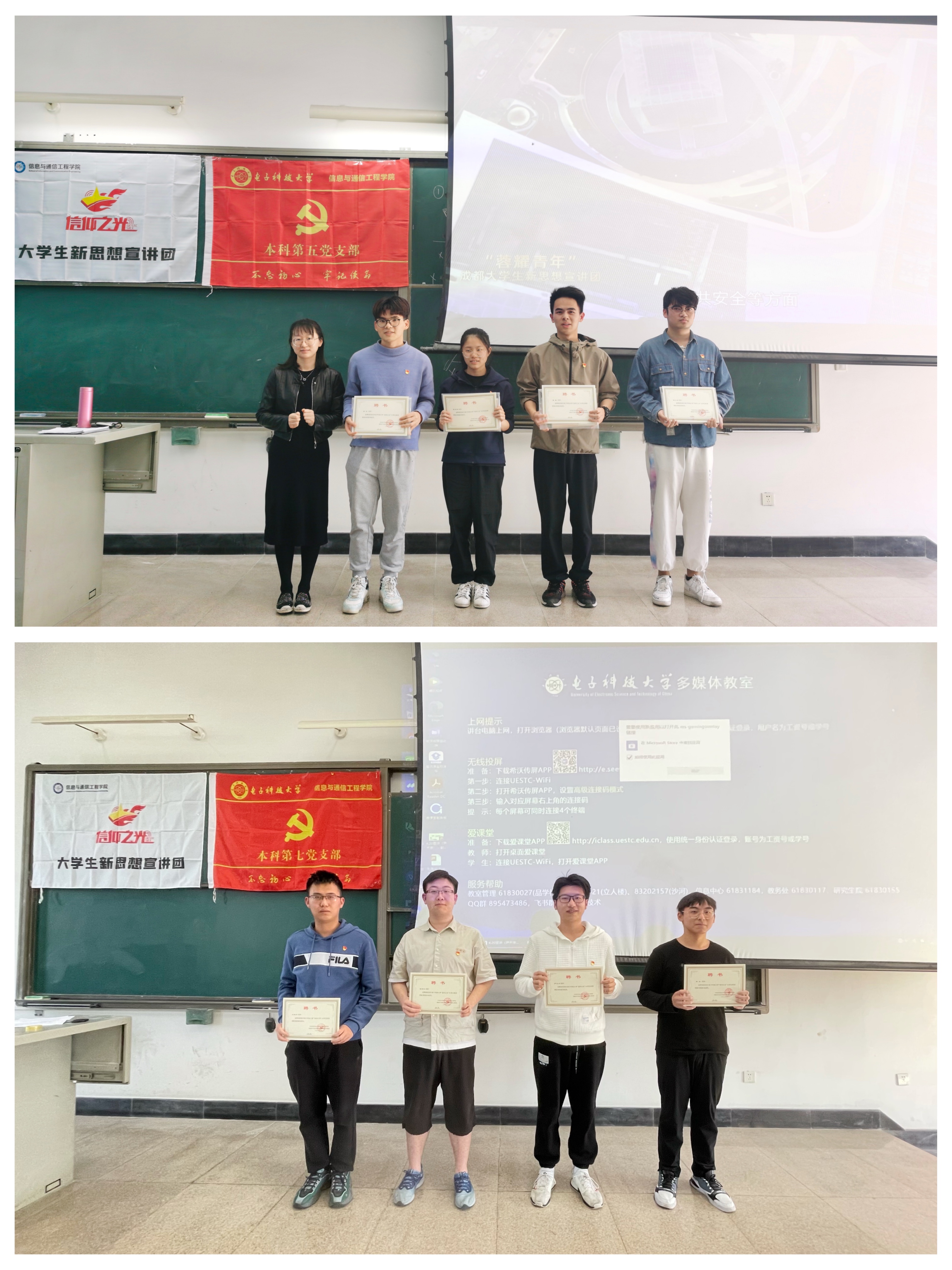4月20日,电子科技大学“5月的向日葵”辅导员工作室下属“信仰之光”老员工新思想宣讲团的20位成员走进信通分党校,面向420余名发展对象及入党积极分子开展微党课宣讲。