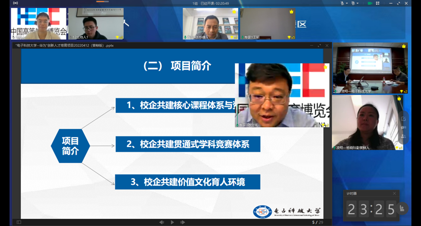 专家组组长王颖就“双百计划”双走访活动的背景、流程和走访要求等进行了详细说明。随后为提名的典型案例《“电子科技大学--华为”创新人才培育项目》线上颁发了提名证书。