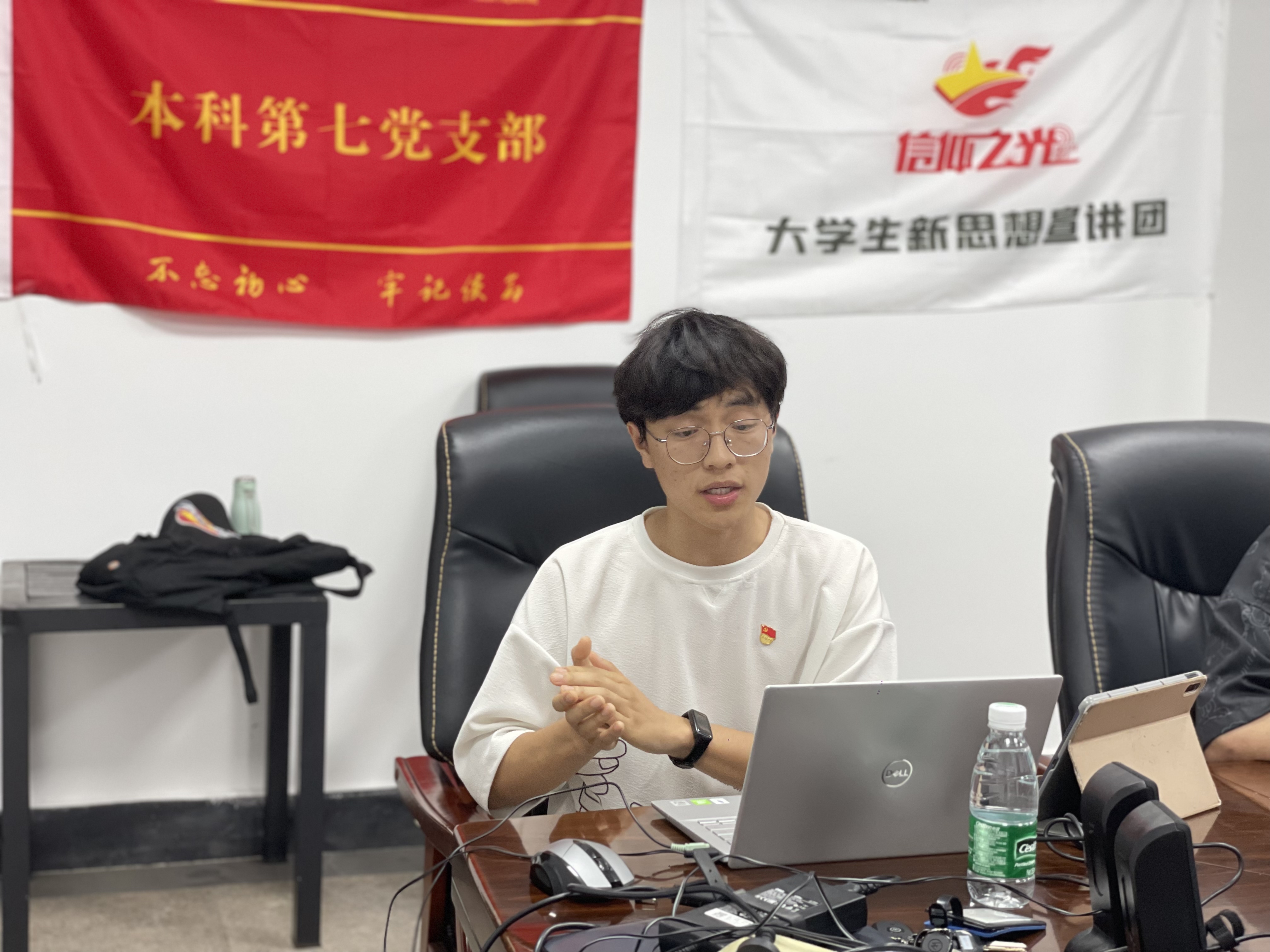 首先由双方支部员工代表进行领学宣讲。北理工孙健同学带领大家共同学习习近平总书记建团百年大会的重要讲话精神,分享支部同学们在志愿活动、科研学术和创新竞赛上取得的各项成绩,鼓励青年老员工主动作为、勇挑重担,让青春在实现中华民族伟大复兴的中国梦中绽放异彩;伟德国际victor1946“信仰之光”老员工新思想宣讲团秦量同学为大家讲述红军长征在雅安的拼搏奋斗,通过介绍陈云出川、翻越夹金山等历史事件的背景和意义,鼓励同学们勇担使命,走好青年一代的长征路。