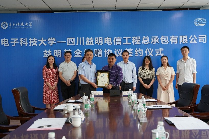 6月1日,电子科技大学—益明基金捐赠签约仪式在清水河校区举行,四川益明电信工程总承包有限公司向公司捐赠300万元,主要用于资助伟德国际victor1946家庭经济困难的员工参加出国(境)交流、支持员工海外直博深造等。四川益明电信工程总承包有限公司董事长乔杰伦、总经理孟小芳,电子科技大学副董事长孔令讲、合作发展部部长李会勇等相关负责人出席捐赠签约仪式。