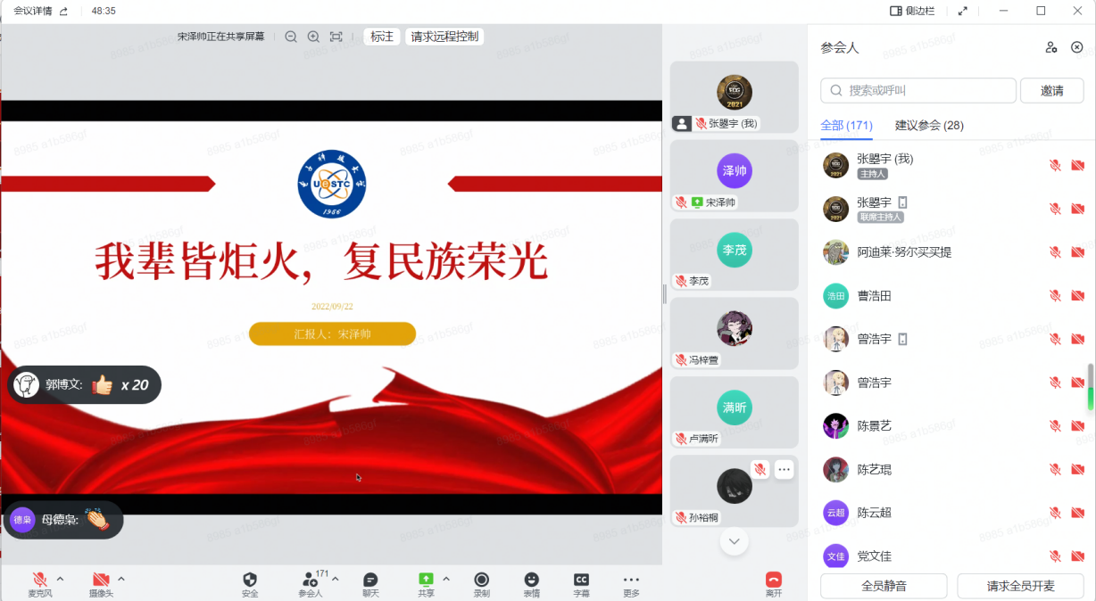 “信仰之光”老员工新思想宣讲团成员宋泽帅以“赓续红色基因,再谱通信华章”为题进行微党课宣讲,带领2022级新生学习历史。回首相顾,我们的党史,是从无到有的党史;我们的校史,是从无到有的校史;它们是无数革命先烈,无数科研前辈用生命和鲜血砌成的峥嵘史诗。宋泽帅呼吁信通青年站在新的历史起点之上,继往开来,再续辉煌。