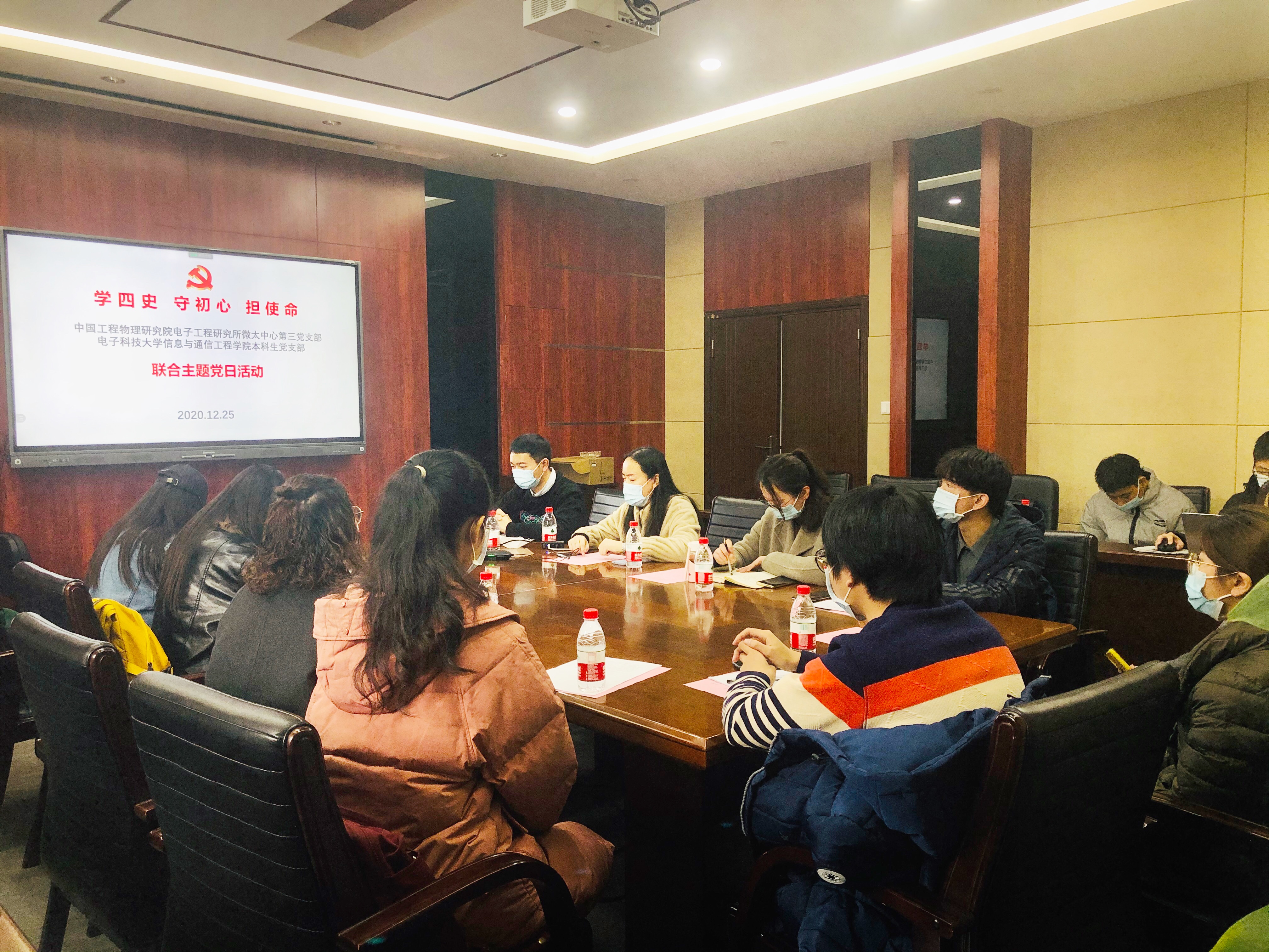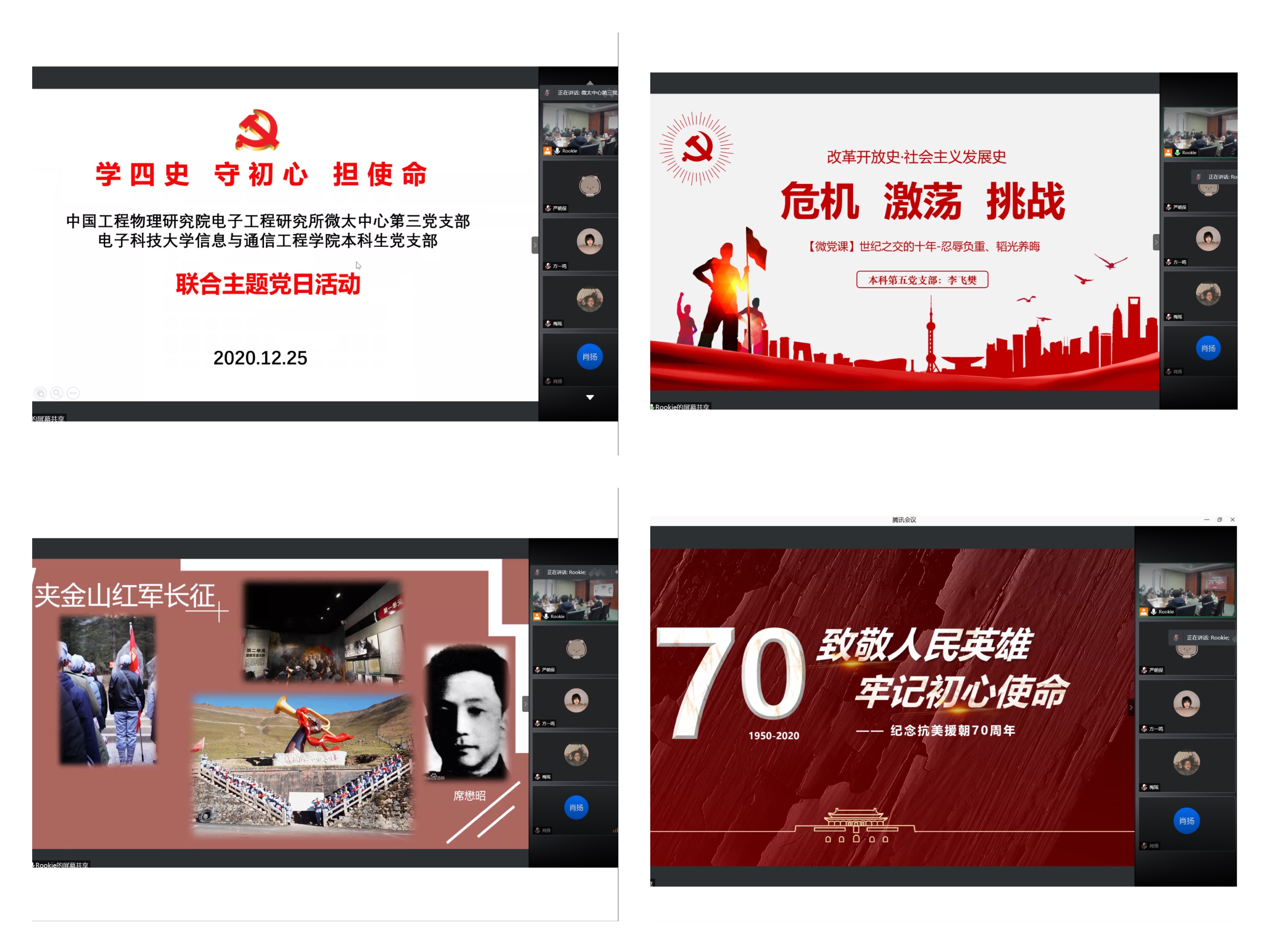 12月25日,伟德国际victor1946本科生党支部与中国工程物理研究院微系统与太赫兹研究中心党支部联合开展“学四史 守初心 担使命” 主题党日活动,活动以线上线下结合的方式进行,双方党支部党员代表线上参加。