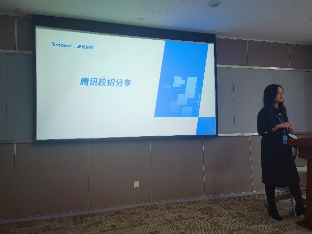 首先,腾讯公司的工作人员为同学们详细讲解了腾讯公司的发展历程与各类主营业务,以“互联网+”为核心,涉及交通,医疗,政务等多种领域,旨在为人民带来更加便捷高效的生活方式,体现了腾讯“用户为本,科技向善”的发展理念。