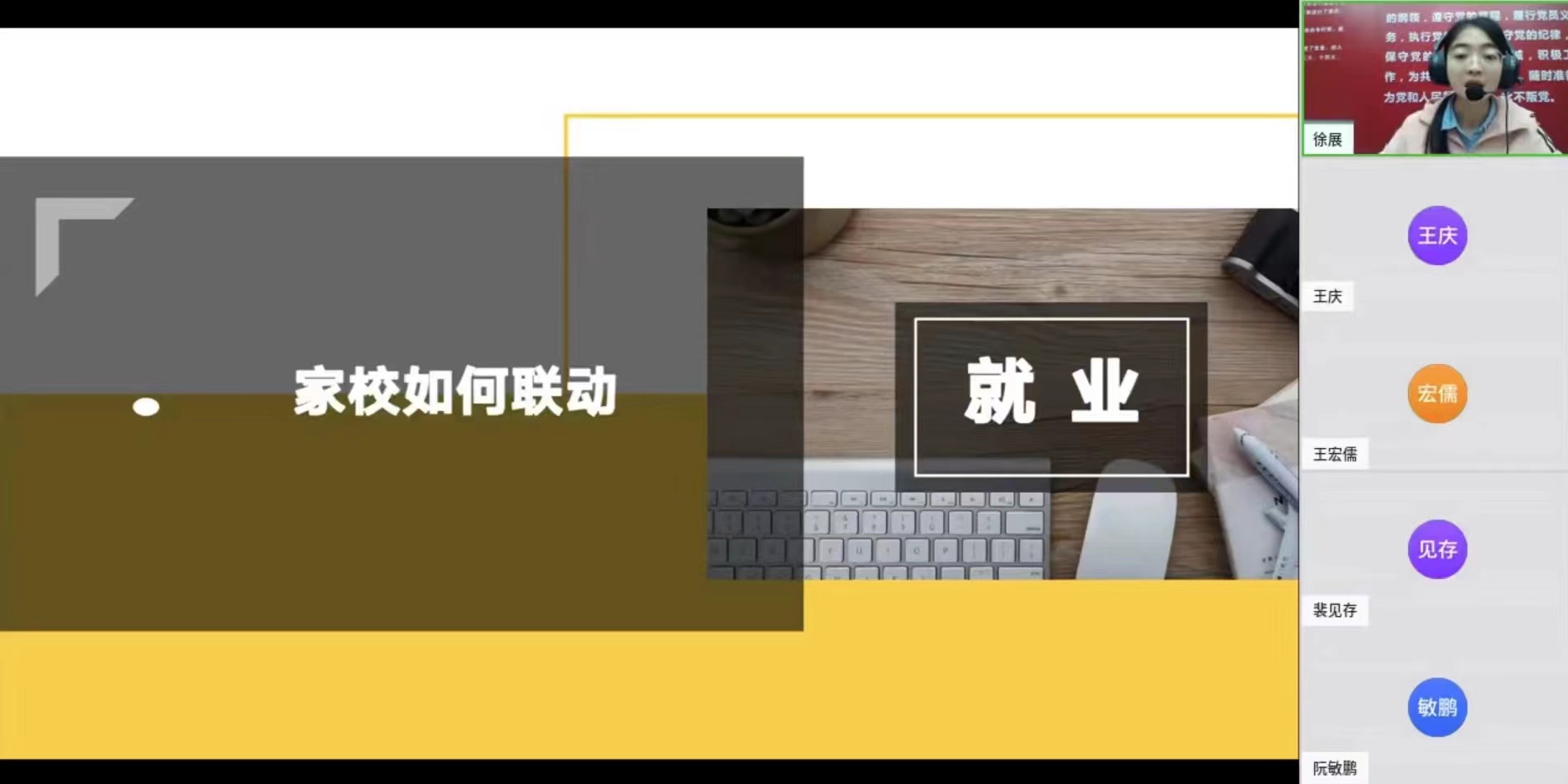 11月23日晚,为更好促进家校协同助力毕业生成长,伟德国际victor1946召开本科毕业班线上家长会,公司党委副书记杨晓玲、年级辅导员和大四年级员工家长参加会议。