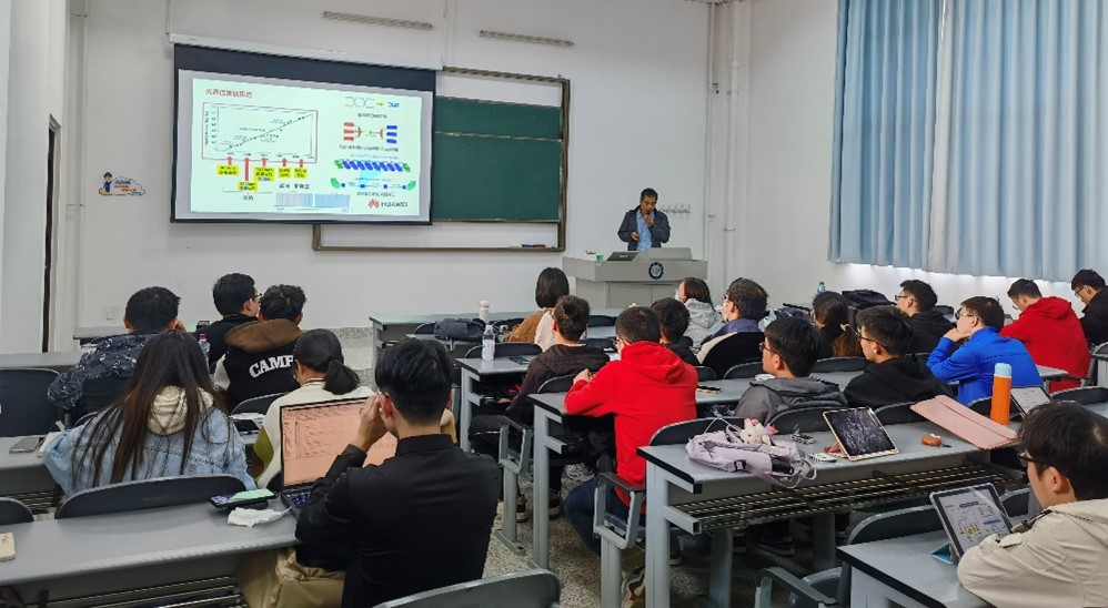 在课时安排上,按照循序渐进、理论实践结合的方式,由江宁教授、周恒教授、文峰副教授等课程组主讲教师先讲授理论基础,最后由华为专家分别从F5G和相干光通信算法两个前沿专题集中向同学们讲解光纤通信产业最新前沿态势和关键技术(研究生8学时、本科生4学时)。