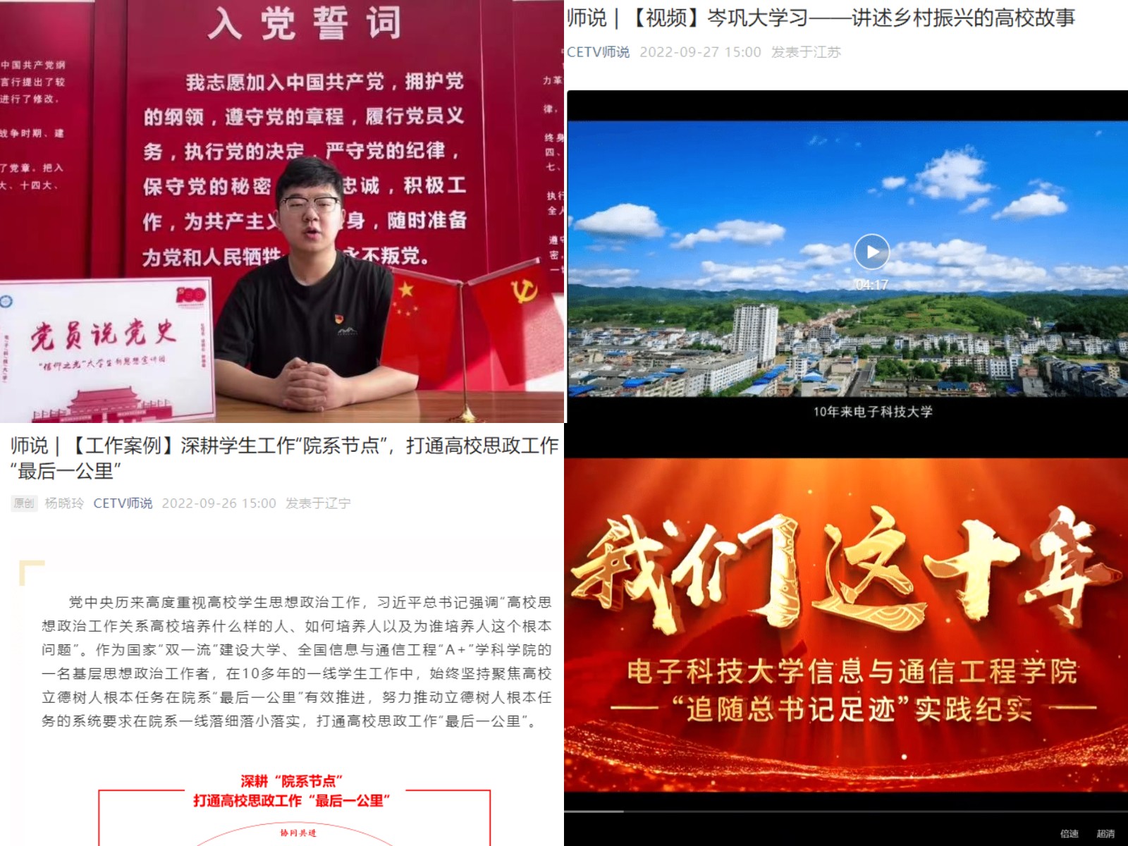 公司党委持续完善“党建+融媒”模式,打造网络文化精品,筑牢网络思政阵地。公司官网新增“学习二十大”专栏,官微全年推出“学习语录”“党员说党史”等理论学习推文33期(累计155期),研究生党建公众号发布近200篇党建思政推文,让党的新政策、新理论、新思想在师生中迅速深入普及。2022年,以公司助力乡村振兴工作为基础创作的原创视频《岑巩大学习—讲述乡村振兴的高校故事》和公司员工工作案例《深耕员工工作“院系节点”,打通高校思政工作“最后一公里”》获中国教育电视台“师说”栏目展播;党的二十大召开前,紧紧围绕公司迎接学习宣传党的二十大工作主线,深入宣传习近平总书记带领全党全国各族人民在实现中华民族伟大复兴新征程上走过的非凡十年,产出以小见大展现十年辉煌巨变、有公司特色的原创视频作品《我们这十年——“追随总书记足迹”实践纪实》,在校内外多个媒体平台发布,累计浏览量超20万。