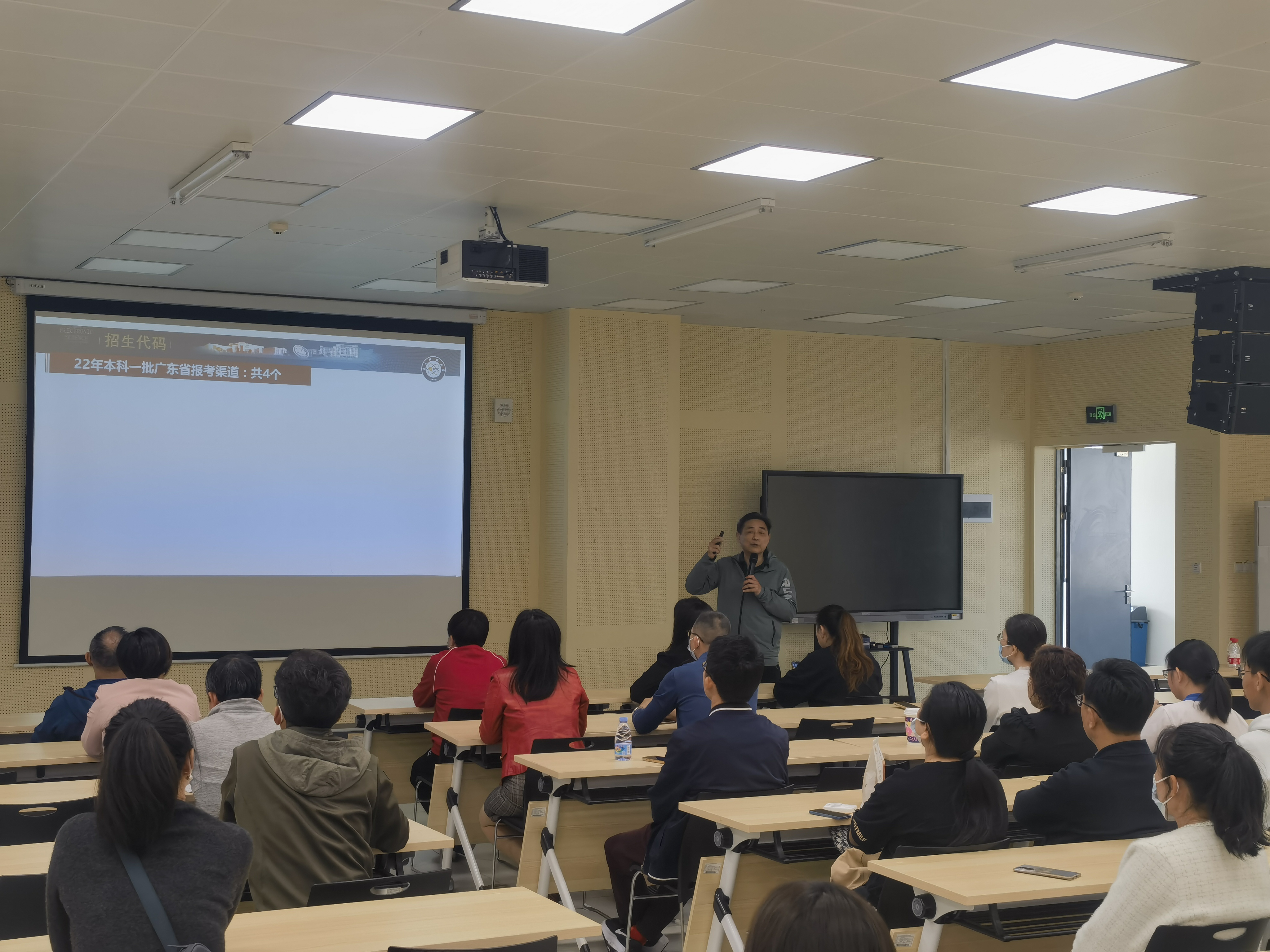 科普讲座后,招生工作组李波老师现场播放了公司的官方宣传视频,并结合公司招生宣传PPT,从人才培养、专业设置和国际交流以及广东省2022年电子科技大学录取情况等方面对公司进行全面的介绍,最后就现场师生及家长提出的问题进行了细致解答。
