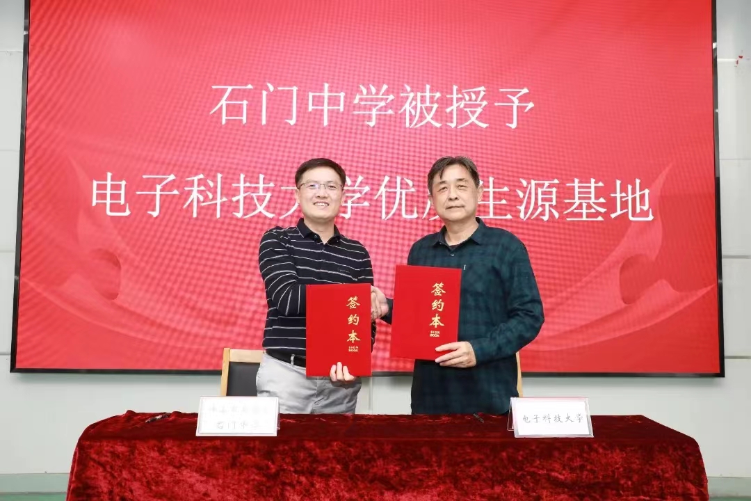 3月8日下午,电子科技大学与佛山市石门中学共建“优质生源基地”签约授牌仪式在佛山市石门中学阶梯教室举行。石门中学张国君副董事长、员工发展中心沈敏姬主任出席签约授牌仪式,签约仪式前张国君副董事长介绍了佛山石门中学发展历程及员工培养情况;贾宇明教授和李波老师分别介绍了电子科技大学在人才培养、团队建设等方面的情况及近年来在广东省及石门中学的招生情况。双方均表示希望借优质生源基地建设的契机,不断加强电子科技大学与石门中学的交流与合作,推动更多优质生源报考电子科技大学。随后贾宇明教授与张国君副董事长共同签署电子科技大学“优质生源基地”协议书,并向中学授牌。