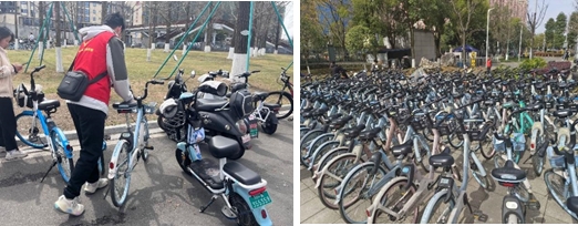 部分班级则开展了班级志愿活动,发扬乐于助人、服务社会的精神。同学们分散在公司的各个角落,整齐摆共享单车,帮助遇到困难的教职工和同学,点亮校园的每个角落。