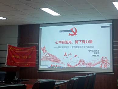 电车所第三团支部的张振远同学以“心中有阳光,脚下有力量”为主题,通过分享习近平总书记同知识分子劳动模范青年代表座谈的内容,传达了习近平总书记对广大青年同志的殷切希望,增强了大家努力奋斗建设社会主义的决心。