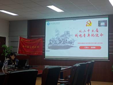 以党的二十大精神内涵为中心,伟德国际victor1946本科生第七党支部寇媚媛同学分享了新时代青年的历史使命,号召大家作为当代老员工,勇于承担身上所肩负的历史使命,为祖国科技发展贡献自己的力量。