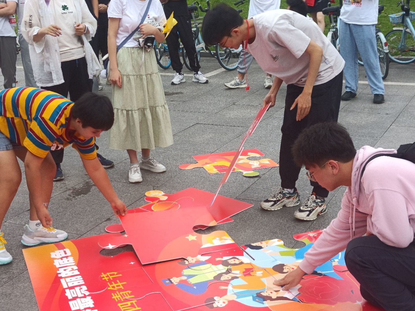 在接下来的“跳格子知识问答”、“红色漫画拼图”和“执笔纵横,共绘青春”等环节中,同学们群策群力,认真挑战。在游戏中回顾峥嵘岁月,感悟红色精神。