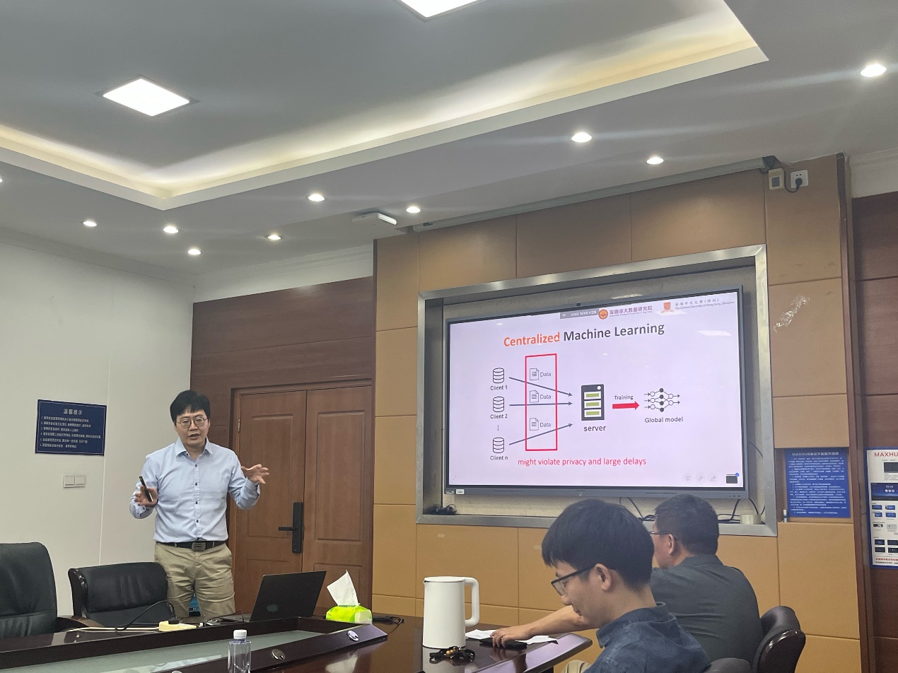 5月15日,香港中文大学(深圳)的张纵辉副教授(IEEE Fellow)应邀做客教师发展中心“名师讲堂”活动,开展“z-SignFedAvg: A Unified Stochastic Sign-based Compression for Federated Learning”专题讲座。本次名师讲堂由教师发展中心主办,伟德国际victor1946承办,伟德国际victor1946林静然教授主持。