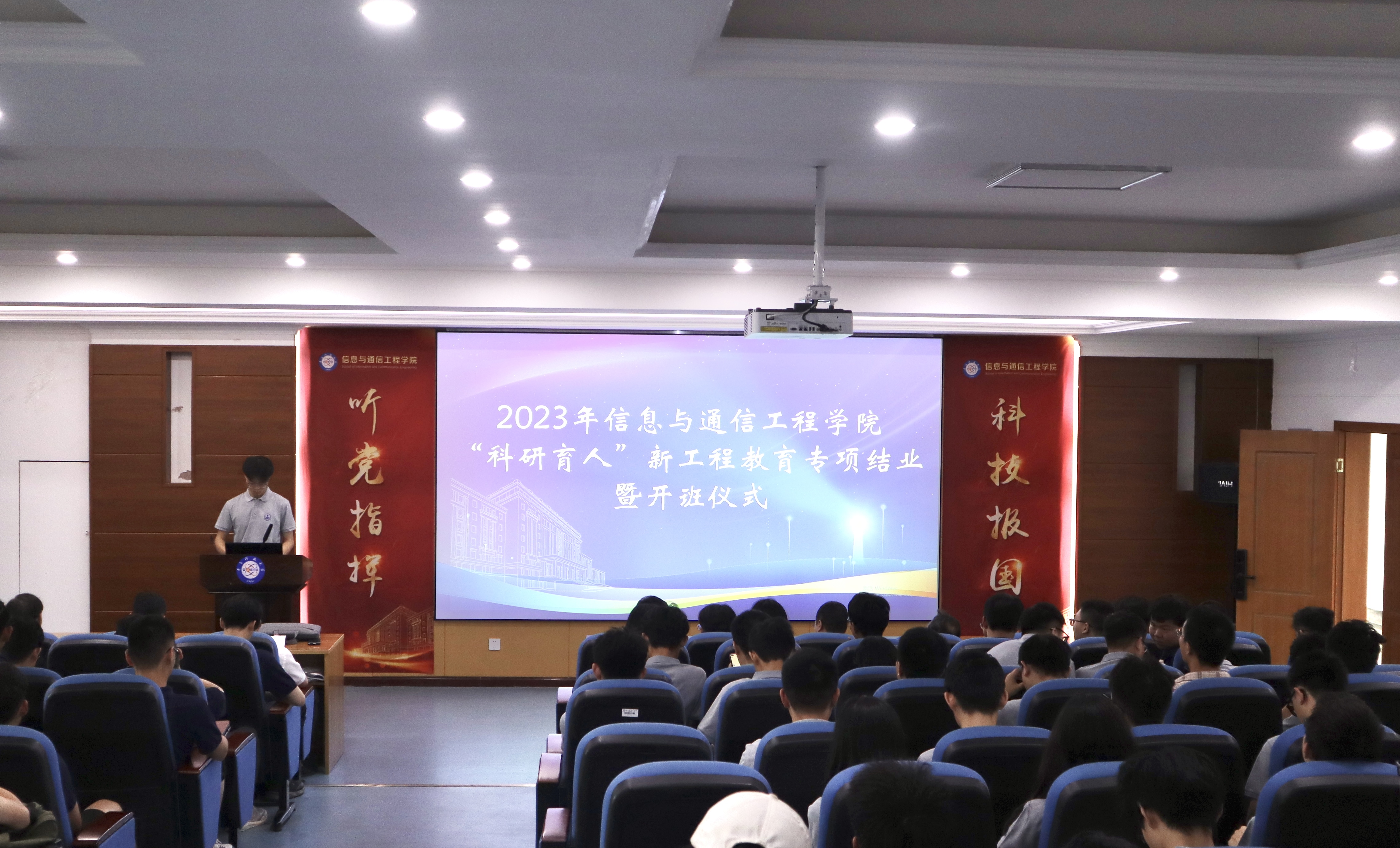 6月14日,伟德国际victor1946举行“科研育人”新工程教育专项结业暨开班仪式。电子科技大学通信抗干扰全国重点实验室主任唐万斌,信息与通信工程公司党委副书记耿宝莹、副经理虞红芳,“卓越成长计划”教师代表吕幼新、周云、刘翼鹏、程婷、孙稚超与“鸿鹄拔尖人才计划”教师代表朱立东、张忠培、武刚、熊文汇出席本次活动。