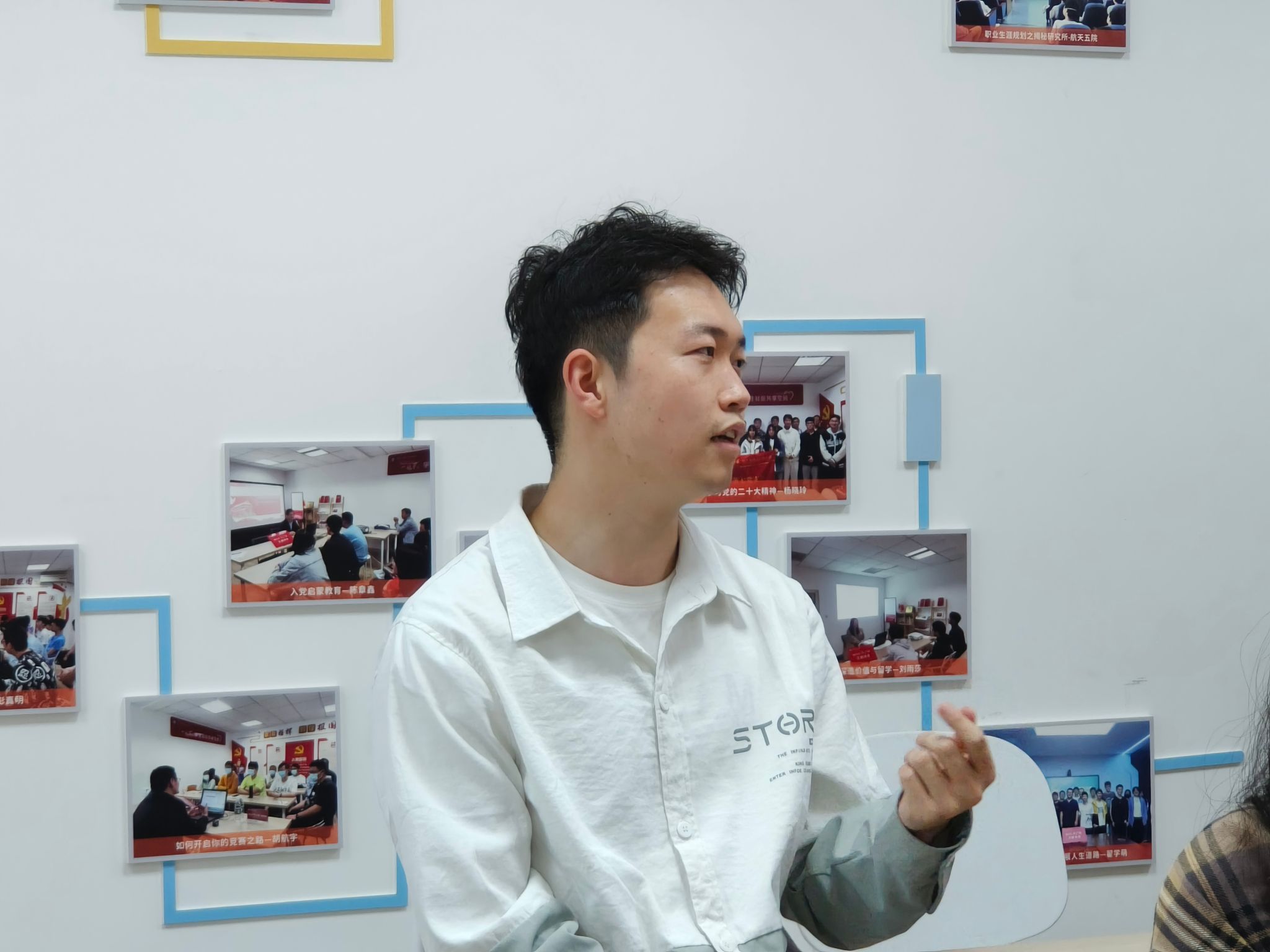 4月29日,2024届本科生省优秀毕业生先进典型事迹分享会在一站式社区“家”门口的领航驿站举行,邀请赵韵涵和刘子涵两位同学围绕个人大学规划和成长,面向大一员工展开分享。