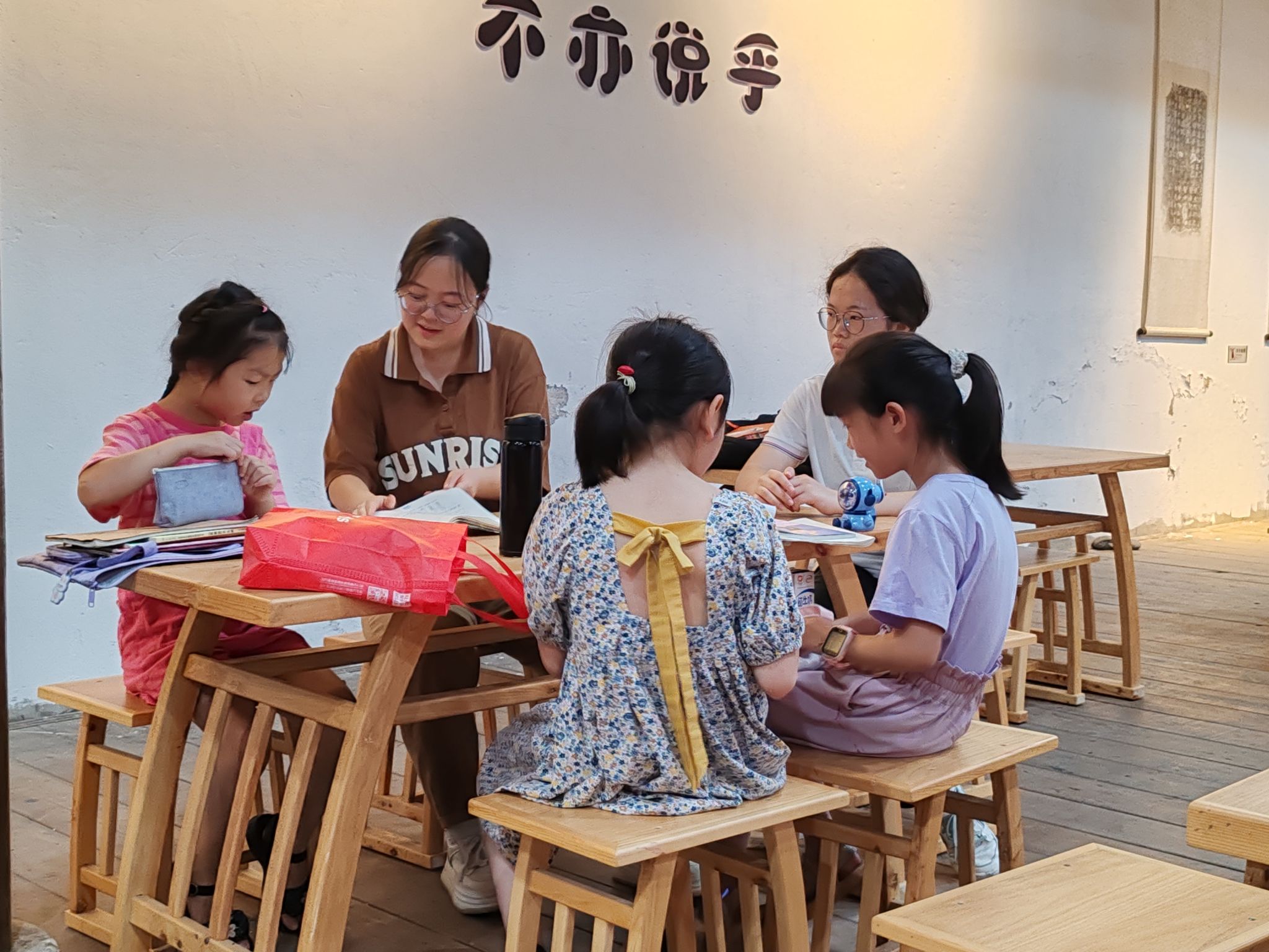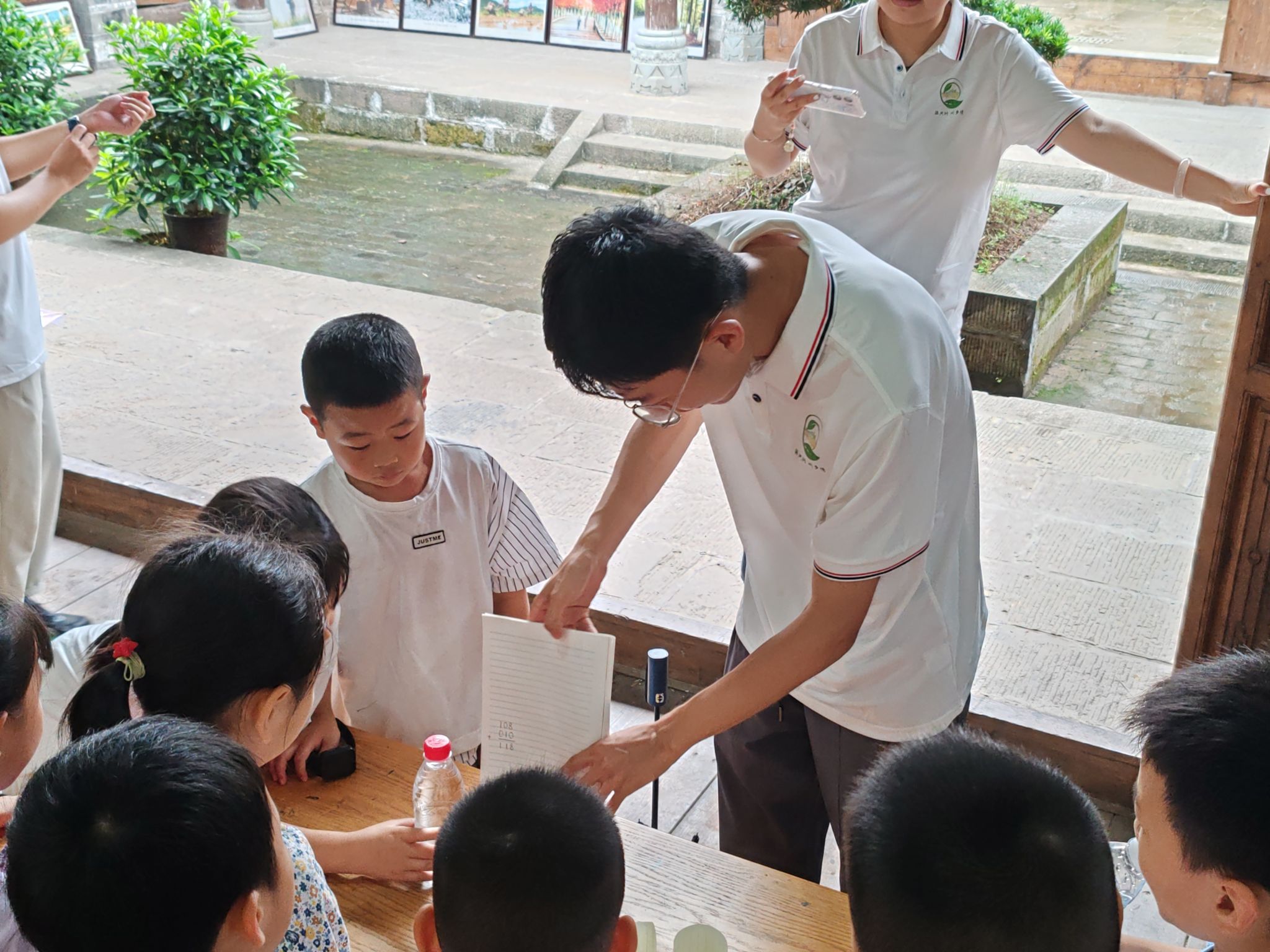 7月9日,实践队面向白衣镇中小员工开展了理论宣讲、科普试验、课业辅导及红色观影等学习教育活动。队员们向小朋友及家长宣讲了党的创新理论,开展“我爱我的祖国,我爱我的家乡”主题活动,并教唱了歌曲《少年中国说》,激发了小朋友们的爱国情怀。此外,队员们为中小员工辅导课业,组织他们观看红色电影《闪闪的红星》,通过这些形式多样的活动丰富了小朋友们的暑期生活。
