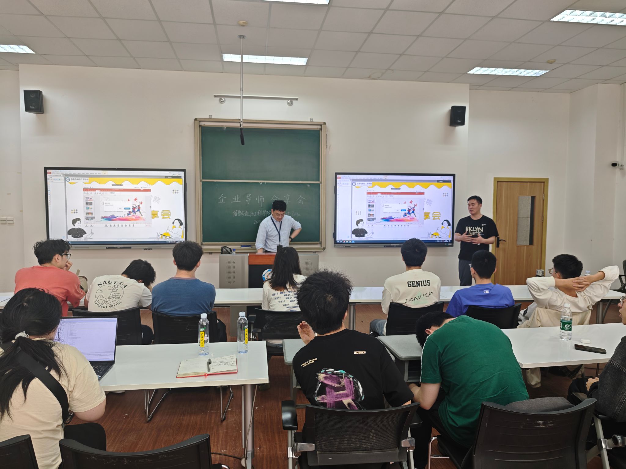 活动结尾,辅导员罗荣与辅导员助理徐源成针对同学们普遍关注的工程硕博培养、研究方向选择及职业发展路径等问题,进行了耐心细致的专项答疑。他们结合公司政策与实际案例,为同学们解疑释惑,帮助大家明确前进目标。