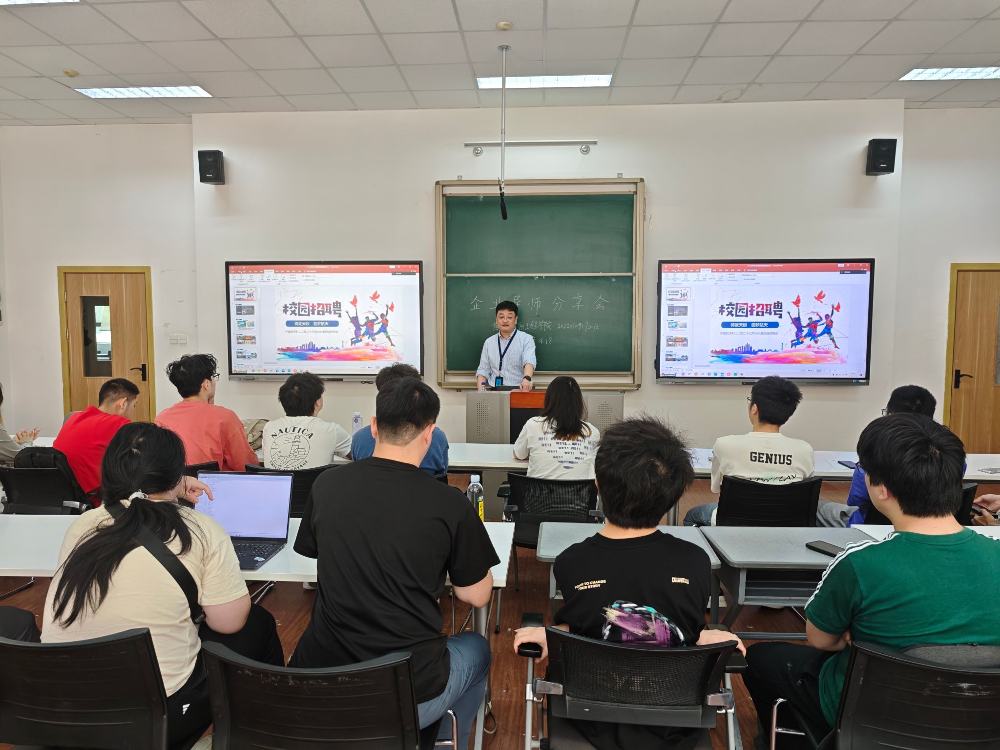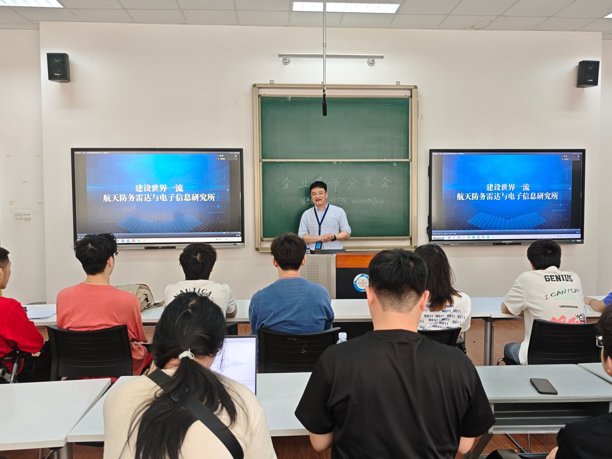 活动伊始,杨岱旭老师以精彩的专题片开场,为在场师生展开一幅中国航天科技发展的壮丽画卷。专题片中,系统呈现了相关研究所紧密围绕国家重大战略需求,在雷达前沿领域开展的突破性研究,彰显了我国在电子信息技术领域的创新高度,让同学们对国家电子信息产业的蓬勃发展有了更为直观且深刻的认识。